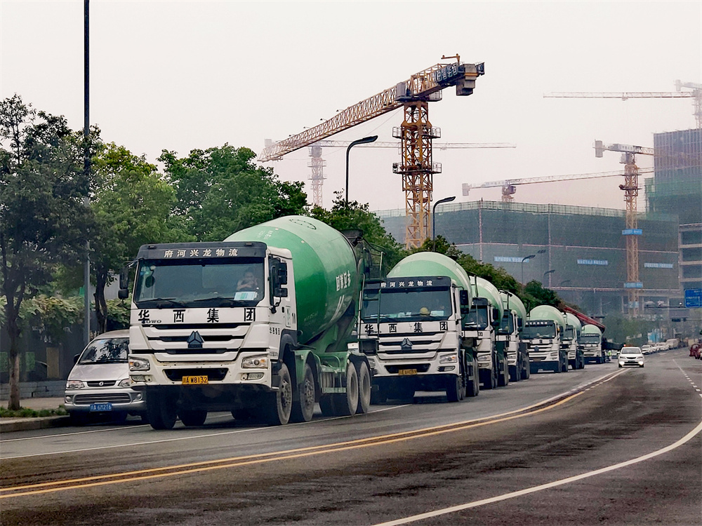 混凝土澆筑期間,正處于環(huán)境整治階段,困難重重,混凝土運輸受到嚴重管制,極大程度影響混凝土澆筑的連續(xù)性,最后經(jīng)政府相關部門及參建各方的大力支持和協(xié)調(diào),允許混凝土運輸車沿著指定路線行駛,雖每車僅能裝載4m³商品混凝土,但混凝土連續(xù)澆筑得到了保證。