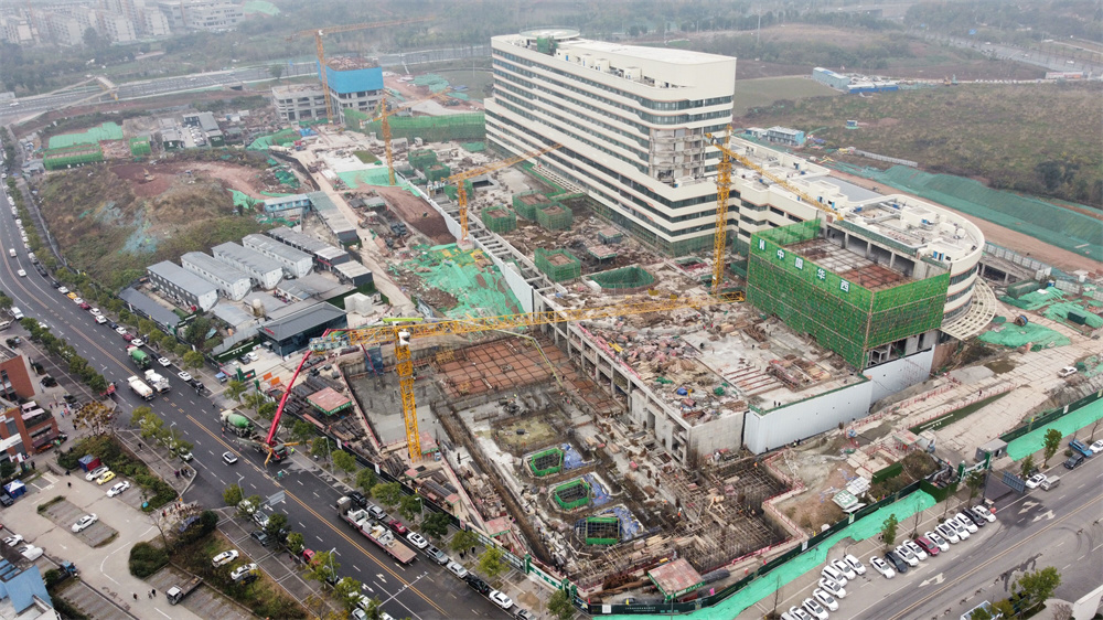 四川省腫瘤診療中心質(zhì)子治療中心項目為西南三省一市一區(qū)(云、貴、川、重慶、西藏)首家質(zhì)子治療中心項目,項目包括質(zhì)子設備用房、配套醫(yī)療用房、配套服務用房、配套設備用房、公共交通共計14000㎡(其中地上建筑面積2500㎡,地下建筑面積11500㎡)?;A形式為樁筏基礎,樁基采用抗浮樁,地上一層,地下三層,地下室采用鋼筋混凝土有梁樓蓋、框剪結構形式,地上結構采用鋼筋混凝土框架結構形式。質(zhì)子治療區(qū)剪力墻最厚達到4.5m,樓板最厚達到4m。