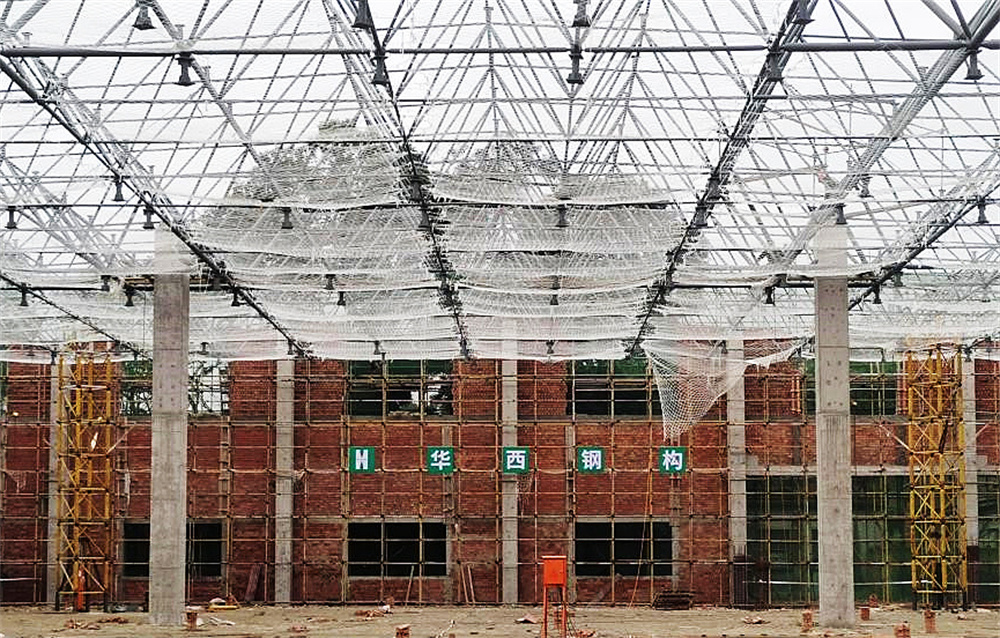 該項(xiàng)目鋼網(wǎng)架尺寸為96米×54米、縱橫向跨度大、結(jié)構(gòu)桿件多、自重大,安裝困難很大,此外,鋼網(wǎng)架最高抬升高度為10.3米,對(duì)頂升技術(shù)的要求也很高。為確保頂升速度、安裝精度和施工安全,此次屋面鋼網(wǎng)架采用“地面原位焊接、整體頂升就位”工藝,將網(wǎng)架拼裝成整體,再利用Plc同步液壓控制系統(tǒng)將其一氣呵成提升到位。同步控制是頂升作業(yè)的關(guān)鍵環(huán)節(jié),必須整體一致,稍有偏差,控制系統(tǒng)就會(huì)制動(dòng)停止,造成網(wǎng)架結(jié)構(gòu)整體受損。在作業(yè)過(guò)程中,確實(shí)也遭遇了許多實(shí)際困難,項(xiàng)目技術(shù)管理人員靠著才思敏捷和豐富的經(jīng)驗(yàn),克服了困難,最終利用成熟技術(shù)經(jīng)驗(yàn)在嚴(yán)密監(jiān)控與調(diào)整下,有效保證了各頂點(diǎn)同步,網(wǎng)架成功頂升就位且精度誤差僅為10毫米,實(shí)現(xiàn)了安全精準(zhǔn)頂升。