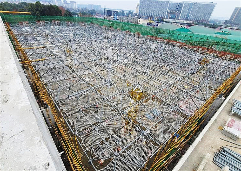 此次網(wǎng)架頂升是該項(xiàng)目一次重要的施工節(jié)點(diǎn),該項(xiàng)目主體結(jié)構(gòu)封頂后屋面鋼網(wǎng)架施工將進(jìn)入“快進(jìn)”模式,這是技術(shù)管理人員集思廣益,在文化中心項(xiàng)目鋼結(jié)構(gòu)網(wǎng)架整體提升成功實(shí)施后,又一次創(chuàng)新的施工嘗試,成功運(yùn)用了“頂升”這一新的施工工藝。國(guó)營(yíng)錦江機(jī)器廠新建傳動(dòng)及附件廠房項(xiàng)目的順利實(shí)施,讓我們?cè)谧约旱募寄芪淦鲙?kù)里又增添了一把新的利器,夯實(shí)了專業(yè)公司的技術(shù)實(shí)力,在今后為公司各項(xiàng)目施工提供更好的服務(wù)。