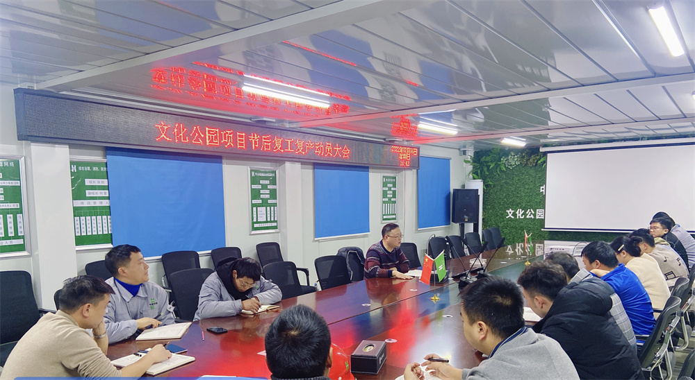 今年春節(jié)期間,正在大家與家人們享受歡樂的團聚時光的時候,文化公園項目早早地在大年初三便正式復工。項目外的人們還沉浸在新年的喜悅中,項目內的善建者們已經收拾好心情投入到火熱的工作中。復工動員大會上,項目全體職工簽下了“奮戰(zhàn)八十天主體封頂”的軍令狀,明確了保安全、保工期、保質量,嚴律己、嚴規(guī)范、嚴細節(jié)的“三保三嚴”要求,項目部組織現(xiàn)場勞務隊組增加100多名工人火速進場,同時增加機械設備等生產要素的投入,積極為加快施工進度提供人力、物力和技術等方面的支持,形成了多個作業(yè)面同時施工,確保不間斷作業(yè)。