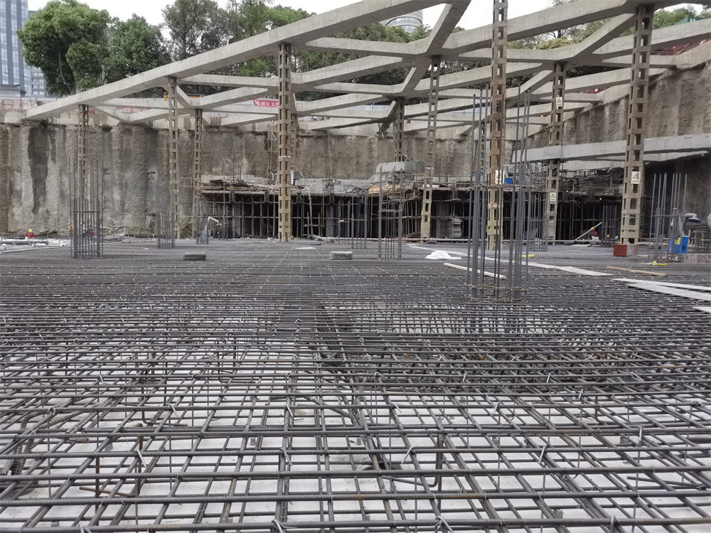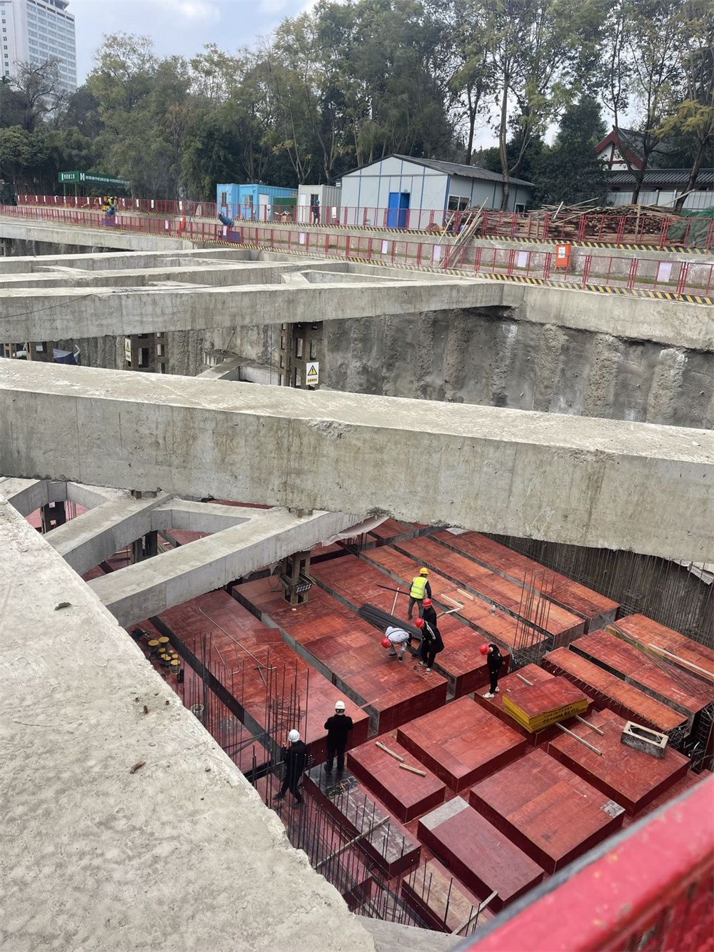 文化公園項目最大的施工難點就是場地狹小、作業(yè)面狹窄,為減少對基坑周邊的變形控制,項目采用施工難度更大的兩道內支撐作業(yè)。但鋼筋加工緩慢與內支撐拆除的降效嚴重影響了工期。為確保完成任務節(jié)點,項目部多次召開專題會議,主動出擊,與業(yè)主、監(jiān)理保持積極溝通,切實制定有效的施工方案。同時靈活調整施工組織安排,分區(qū)段進行施工,并協(xié)調聯(lián)系鋼筋外加工場地,將部分鋼筋進行場外加工,妥善地解決了因鋼筋加工和拆除內支撐引起的降效問題。同時,為了防止疫情反彈,項目部除嚴格執(zhí)行疫情常態(tài)化防控外,還多次組織全員核酸檢測,最大限度排除潛在的隱患,保障員工生命安全,確保各項生產工作有序、平穩(wěn)推進。
