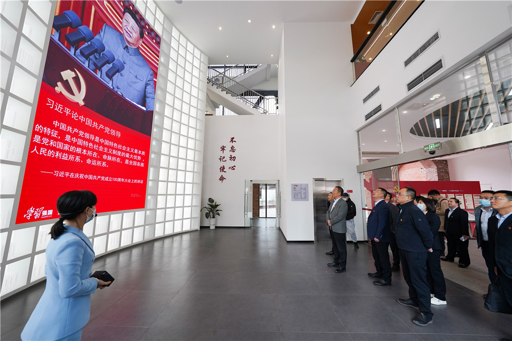活動(dòng)開始前,大家一齊跟隨講解員對(duì)學(xué)習(xí)強(qiáng)國(guó)主題街區(qū)進(jìn)行了參觀,大家通過與主題街區(qū)大屏的互動(dòng),跟隨“紅船”學(xué)習(xí)了解了黨的36個(gè)重大歷史節(jié)點(diǎn)故事。通過觀看一張張老照片,一幕幕珍貴、動(dòng)人的歷史畫面仿佛映出眼簾。在三樓的成都TOP100影像展廳中,由公司承建的西村一號(hào)、天府國(guó)際機(jī)場(chǎng)T2航站樓等重要工程赫然出現(xiàn)在大家的視野中。