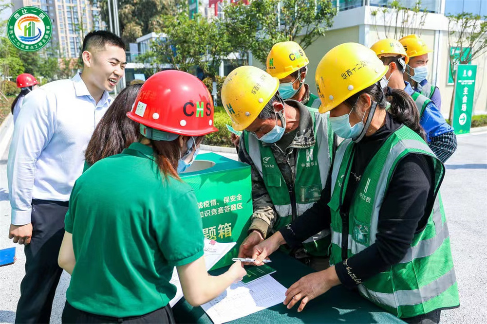 此次知識競賽通過答題卡快問快答形式開展,內(nèi)容涵蓋黨史教育、疫情防控、安全防護(hù)等方面,答題正確即可獲得“暖心防疫禮包”。建筑產(chǎn)業(yè)工人們踴躍參與,氣氛熱烈,現(xiàn)場掀起了答題熱潮,大家也通過此次知識競賽豐富了自身知識儲備。