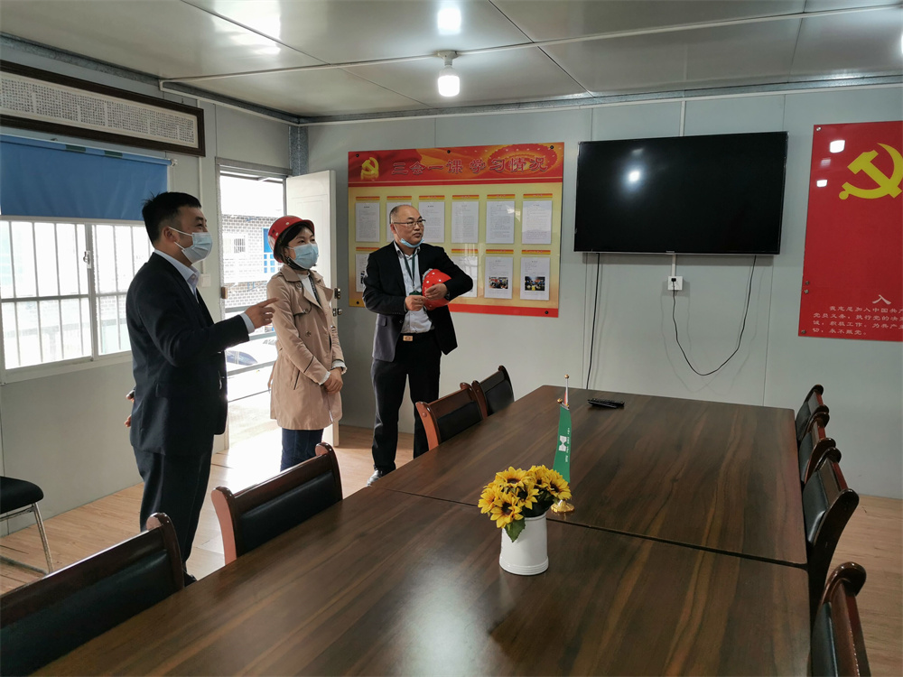 驗收組一行聽取了項目黨支部關于“三化黨建”示范點創(chuàng)建的匯報,項目黨支部書記從打造標準化黨支部,夯實基層黨建工作、落實有形化載體,加強黨的陣地建設、提高規(guī)范化水平,創(chuàng)新黨建特色亮點等工作情況進行了詳細匯報。隨后,驗收組通過現(xiàn)場查閱黨建工作資料和臺賬,以及實地查看有形化建設等對項目黨建工作進行了全面評估。
