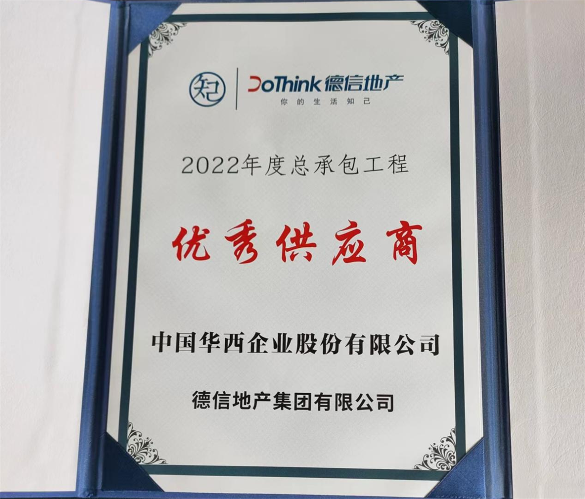 第二次獲得德信地產總承包工程“優(yōu)秀供應商”稱號,充分體現(xiàn)了德信地產集團對中國華西的肯定與認可,2021年11月,華西再次承接德信地產東樾玖苑項目,為雙方建立了更深層、更廣闊的合作關系。在下一步的工作中,項目部全體職工將再接再厲,奮勇向前,把本工程打造成一座精品工程,華西也將繼續(xù)與德信地產攜手,強化合作機制,提升管理水平,建時代精品,筑美好人生,以優(yōu)異的成績喜迎黨的二十大!