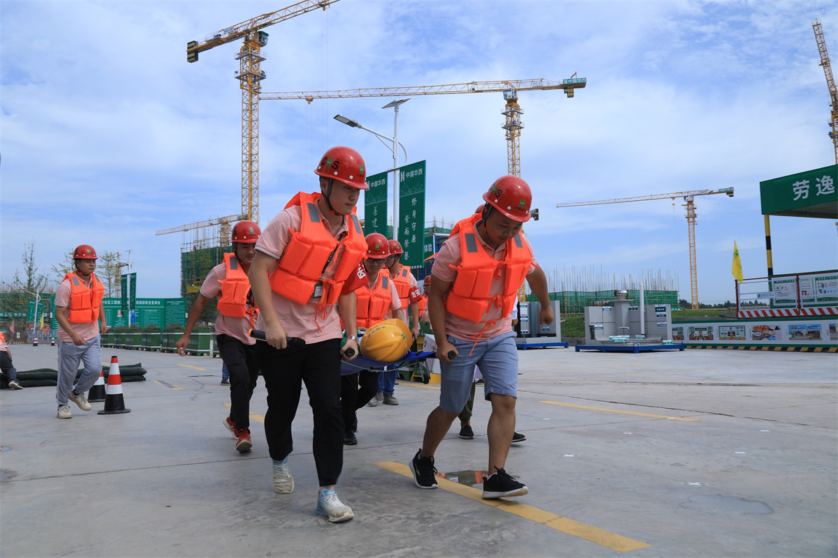 為切實(shí)貫徹2022年安全生產(chǎn)月“遵守安全生產(chǎn)法,當(dāng)好第一責(zé)任人”主題精神,增強(qiáng)項(xiàng)目人員安全生產(chǎn)管理意識,提高項(xiàng)目參建人員應(yīng)急救援能力,6月29日上午,草池鎮(zhèn)羅家村社區(qū)工程施工一標(biāo)段項(xiàng)目組織開展了2022年防汛應(yīng)急救援演練活動。未來科技城發(fā)展局黨組成員、副局長李銳,成都高投建設(shè)開發(fā)有限公司副總經(jīng)理李宇舟,華西十二公司副總經(jīng)理、總工程師謝勇,一分公司黨總支書記文力,未來科技城區(qū)域內(nèi)全部建設(shè)工程項(xiàng)目負(fù)責(zé)人參加活動。