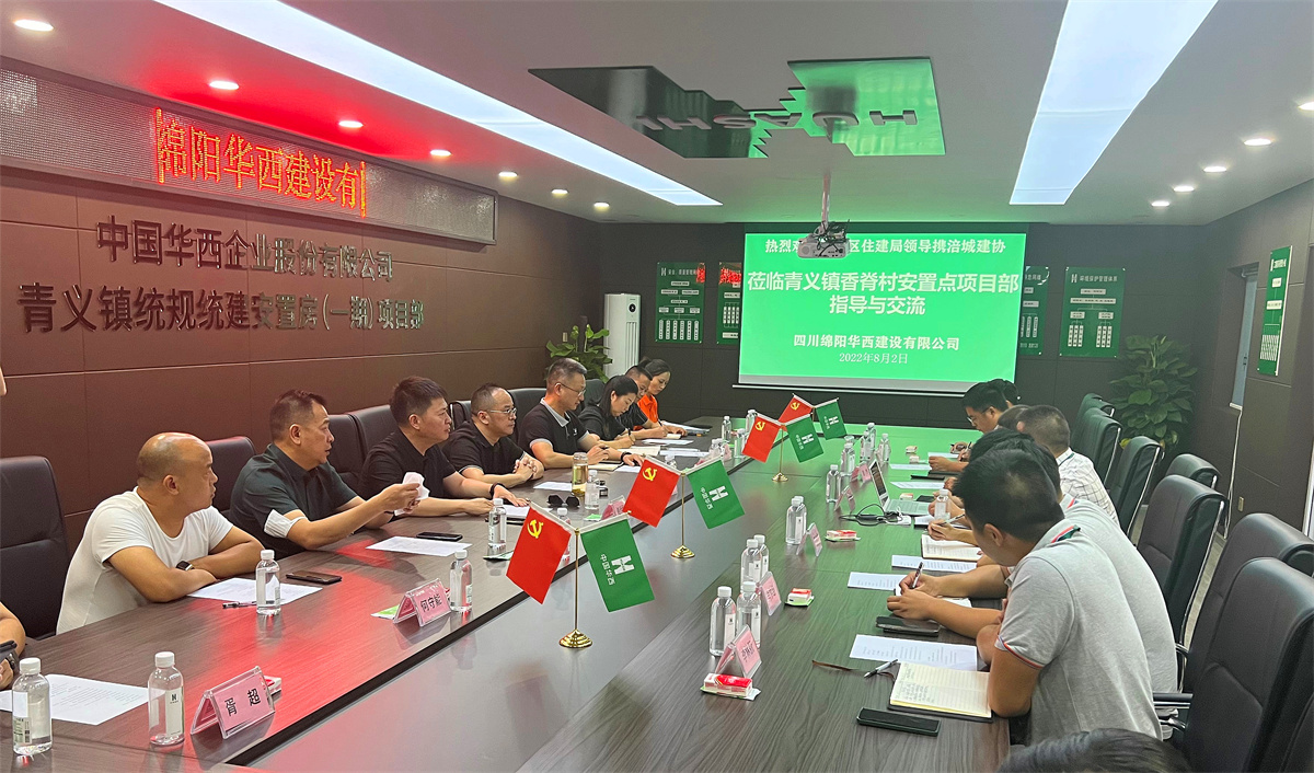 8月2日,綿陽市涪城區(qū)住建局副局長曾明義、涪城區(qū)建筑行業(yè)協(xié)會會長鮮洪強、常務副會長李仕、秘書長趙仕民及區(qū)住建局相關(guān)人員來到青義鎮(zhèn)統(tǒng)規(guī)統(tǒng)建安置房(一期)項目進行座談交流,項目部主要管理人員參加交流會。