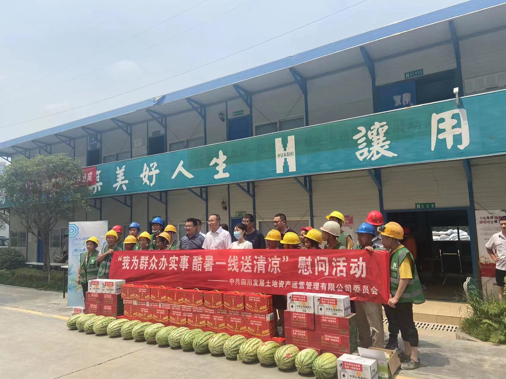 八月以來(lái),高溫警報(bào)不斷拉響,持續(xù)炎熱的天氣給堅(jiān)守一線的勞動(dòng)者們帶來(lái)嚴(yán)峻考驗(yàn),8月18日,四川發(fā)展土地公司總經(jīng)理劉大波一行到華府279項(xiàng)目開(kāi)展“我為群眾辦實(shí)事,酷暑一線送清涼”防暑降溫慰問(wèn)活動(dòng)。