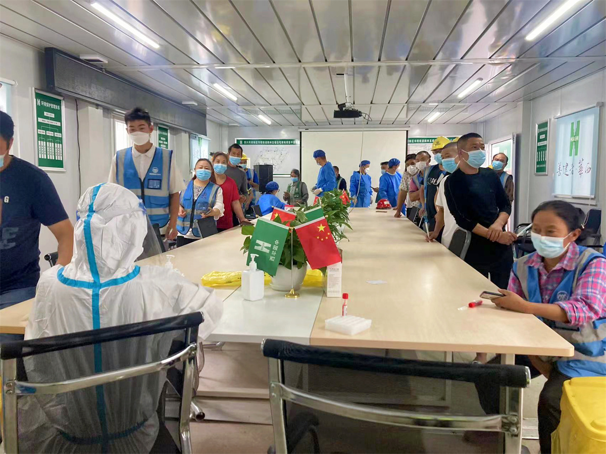 “工人包吃包住,生活這方面沒問題。”兩個項目每天采取統(tǒng)一訂購盒飯,三餐全包,住宿統(tǒng)一安排住在生活區(qū)宿舍。項目部每天安排2-3名人員持24小時核酸檢測陰性證明外出一次就近購買必要的生活物資。項目內(nèi)全體人員按照“應(yīng)檢必檢”要求,每天完成一次全員核酸檢測。