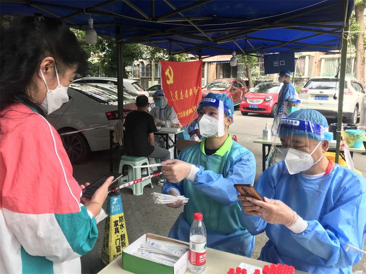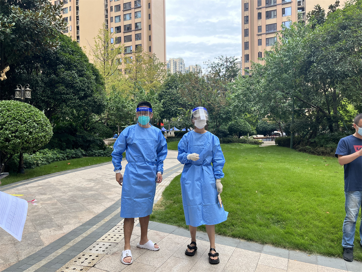 在社區(qū)第一天召集志愿者時(shí),四分公司工程部的任芮熙就毫不猶豫地報(bào)了名,配合社區(qū)做好登記信息、發(fā)布通知、搬運(yùn)防疫物資、維持秩序維持秩序等工作。從9月1日到今天,連續(xù)5天,她與幾十名志愿者相互配合,為社區(qū)人員熱情服務(wù),使小區(qū)每天的核酸采樣有條不紊,井然有序。“我們小區(qū)居民比較多,開始居家辦公后,看到社區(qū)缺人,工作壓力很大,我就來當(dāng)志愿者了,相信這場(chǎng)戰(zhàn)疫我們不會(huì)輸!”