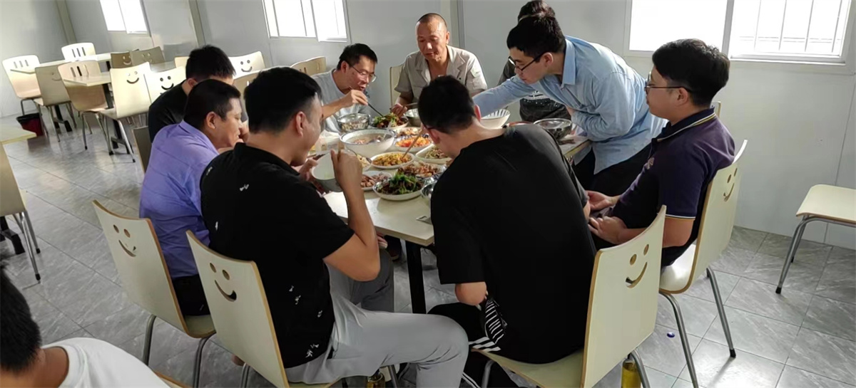 “中秋佳節(jié)誰(shuí)都想回去和家人團(tuán)聚,因疫情形勢(shì),成都已按下暫停鍵10天有余,同時(shí)也為了項(xiàng)目能順利完工,響應(yīng)集團(tuán)號(hào)召,我們的管理人員們和來(lái)自五湖四海的施工兄弟們都堅(jiān)守在施工一線”,管理人員對(duì)著大家說(shuō)。此時(shí),在項(xiàng)目食堂充斥著你一言我一語(yǔ)的爭(zhēng)論聲:“我做辣子雞”、“我做水煮肉片”、“今天我來(lái)給你們露一手”,平日里各自忙碌在工地現(xiàn)場(chǎng)的同事們,今天都像家人一般,在工地食堂里忙碌,你備菜,他洗菜,我炒菜,大家分工合作,笑語(yǔ)盈盈。