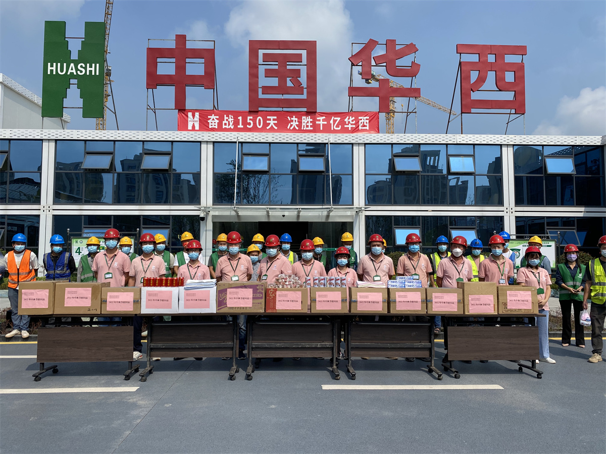 隨后,李銳同項目部班子成員一起對閉環(huán)施工的勞務人員展開了中秋節(jié)慰問。打開禮包,是沉甸甸的祝福,項目部為每位勞務人員準備了月餅、飲料、生活用品等慰問品。“大家連日來辛苦了,項目閉環(huán)管理期間能夠正常施工離不開各位的努力,大家要加強個人防護,確保自身安全、項目安全。今天,大家過一個安全祥和的中秋節(jié),明天,希望全力以赴做好接下來的各項施工生產(chǎn)任務”,項目經(jīng)理賈成斌說。
