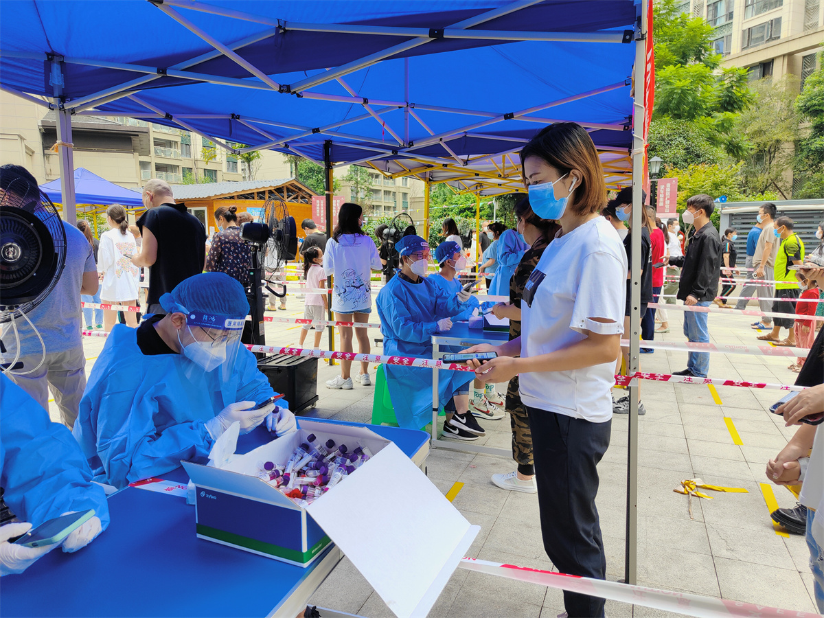 為落實(shí)防疫政策,嚴(yán)格按照“應(yīng)檢必檢,不落一人”的原則項(xiàng)目青年突擊隊(duì)聯(lián)系社區(qū),請(qǐng)社區(qū)安排核酸檢測(cè)人員上門檢測(cè)。由于核酸檢測(cè)人手不足,項(xiàng)目突擊隊(duì)派出隊(duì)員擔(dān)任志愿者,幫助掃碼登記,維持檢測(cè)秩序。在“大白”和青年突擊隊(duì)員的共同努力下,項(xiàng)目600余人的核酸檢測(cè)每次只需半小時(shí)就完成,這大大提高了每次核酸檢測(cè)的效率,同時(shí)也得到了社區(qū)和工人的一致好評(píng)。