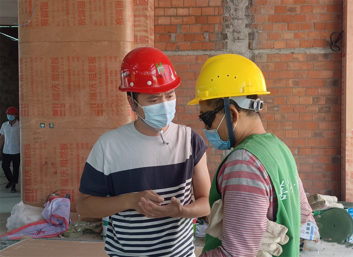 “心合意同,謀無(wú)不成”,每一場(chǎng)勝戰(zhàn)的背后都是整個(gè)團(tuán)隊(duì)通力合作、奮力拼搏所灑下的汗水,作為華西悅湖項(xiàng)目的責(zé)任工長(zhǎng),岳泯丞深諳其理。烈日下,他一直都在,現(xiàn)場(chǎng)各個(gè)作業(yè)面都總能看見(jiàn)這個(gè)小伙子,指導(dǎo)協(xié)調(diào)工作面,安排布置交叉施工工序,雖然整天汗流浹背卻依然干勁十足,他安全帽下那一張不再白皙的臉龐,徹底暴露了他和這個(gè)酷暑之間的小秘密。