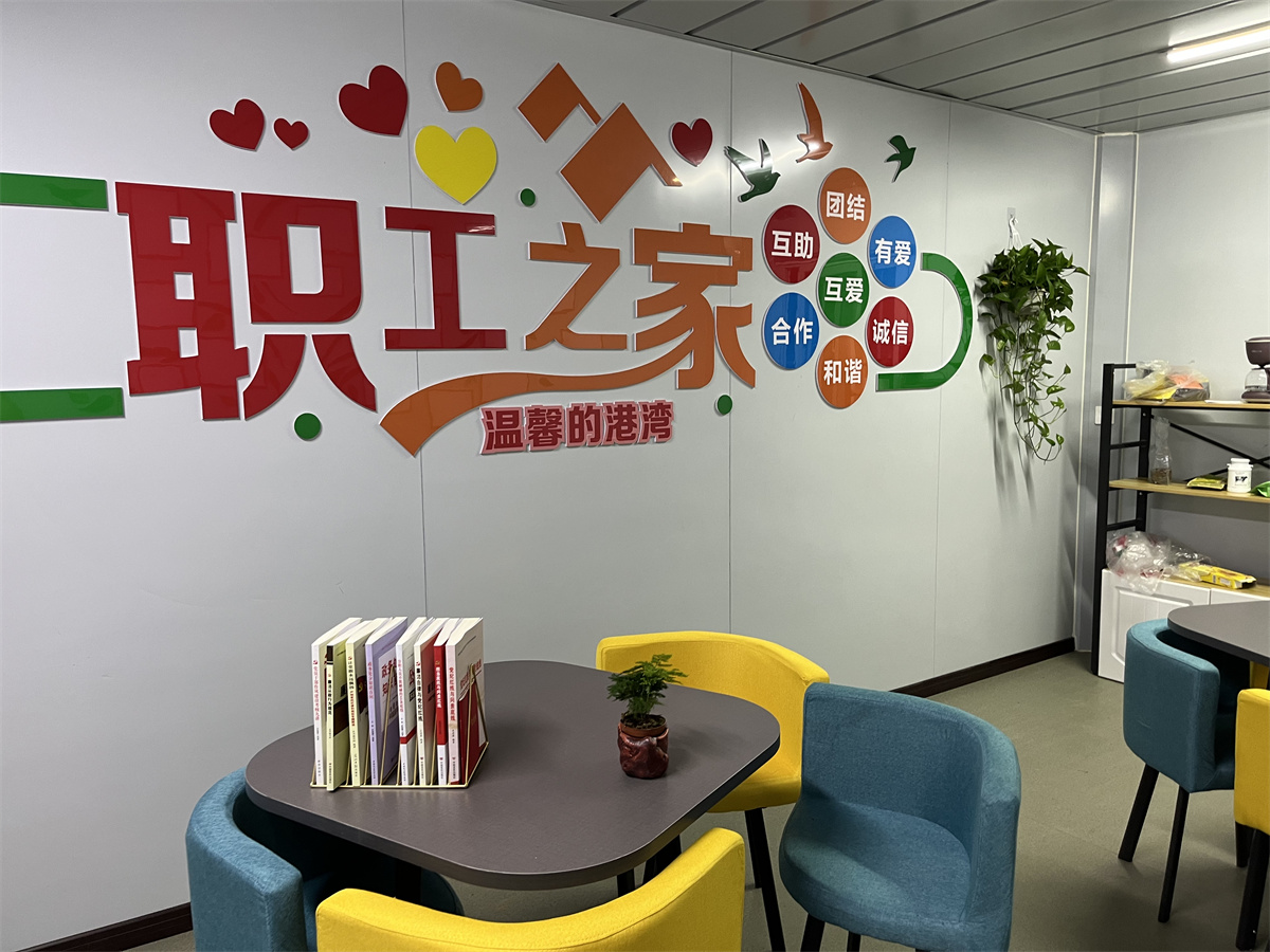 為增強職工幸福感和歸屬感,項目積極打造“職工小家”,小家內(nèi)不僅為大家準(zhǔn)備了籃球、羽毛球、乒乓球等體育用品,也打造了圖書角,豐富的小零食及飲料也為大家做好加班時的能量補給,讓大家在忙碌的同時感到溫暖,在工作之余感到愜意。