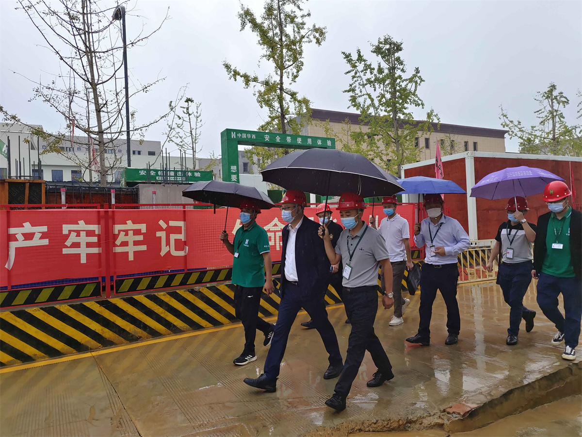 徐佳能一行實地查看了項目工程進度、施工質量,充分了解了工程難點、項目實施準備情況。在對現(xiàn)場情況有了深入了解后,徐佳能對項目部下一步工作提出了三點要求:一是項目部上下要統(tǒng)一思想,大干快上,確保完成年度產值任務,為集團實現(xiàn)“千億華西”的目標竭盡全力。二是要進一步提高現(xiàn)場整體管理水平,項目管理團隊要精益求精,加強各項工作的管理。三是要嚴抓疫情防控,在保證安全的情況下加快建設速度,圓滿完成目標任務。