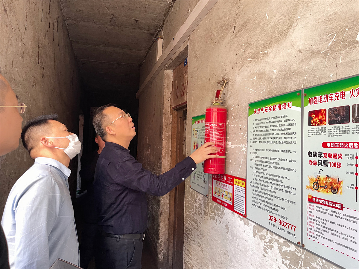 范曉晉一行來到小區(qū),詳細(xì)了解小區(qū)的人員居住密度及各項(xiàng)安全措施情況等情況,實(shí)地檢查了小區(qū)的消防設(shè)施是否完善,用電用氣情況是否安全,非機(jī)動(dòng)車停放點(diǎn)是否規(guī)范,排水溝是否通暢,其他公共區(qū)域是否存在安全隱患等。