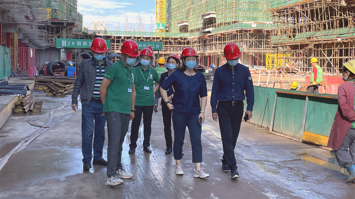趙尤蕾一行先深入現(xiàn)場了解復(fù)工復(fù)產(chǎn)和疫情防控的情況,并對項目實體質(zhì)量和安全文明施工等情況進(jìn)行了檢查。隨后,項目黨支部書記林華對項目工程概況、生產(chǎn)進(jìn)度、技術(shù)管理、質(zhì)量管理、安全管理、黨建工作等情況做了全面詳細(xì)匯報。