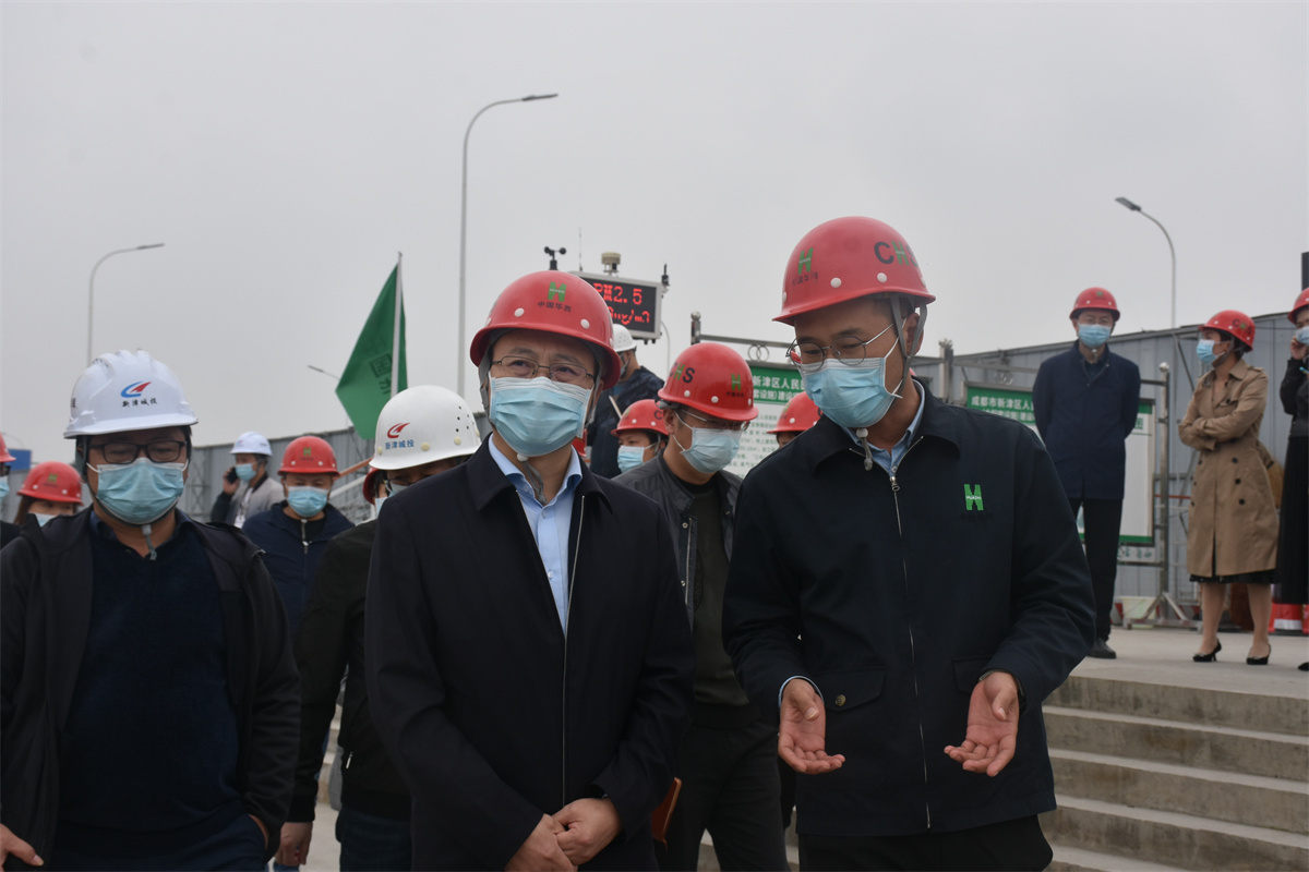 在項目現(xiàn)場,丁寧一行認真聽取項目關(guān)于施工進展、安全生產(chǎn)、疫情防控和文明施工等情況的匯報,一一詢問了施工中存在的困難和問題。