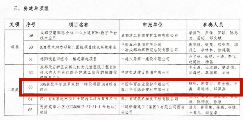 11月21日,由四川省建筑業(yè)協(xié)會主辦的“2022年四川省建設工程BIM應用大賽”評比結果公布,公司提交的《50%裝配率草池羅家村項目BIM綜合應用》參賽作品,經(jīng)過線下答辯和專家評選,在146項參賽作品中表現(xiàn)優(yōu)異,最終榮獲房建組二等獎。這是半年內公司獲得的第二項BIM技術評比獎項。
