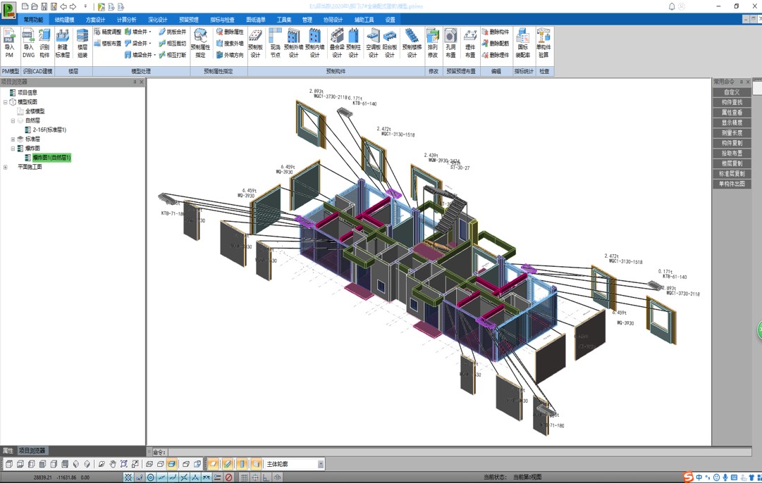草池羅家村社區(qū)一標段項目總建筑面積27.4萬平方米,是按照國標要求50%裝配率的集團重點項目,也是集團目前裝配率最高的在建工程。項目設計階段,針對預制構件進行了拆分、配筋、預留預埋等工序BIM正向設計,公司BIM技術團隊與各參建方密切配合,將BIM協(xié)同平臺、深化設計、施工模擬、協(xié)同云工具等應用整合,實施了BIM+的成套技術應用。