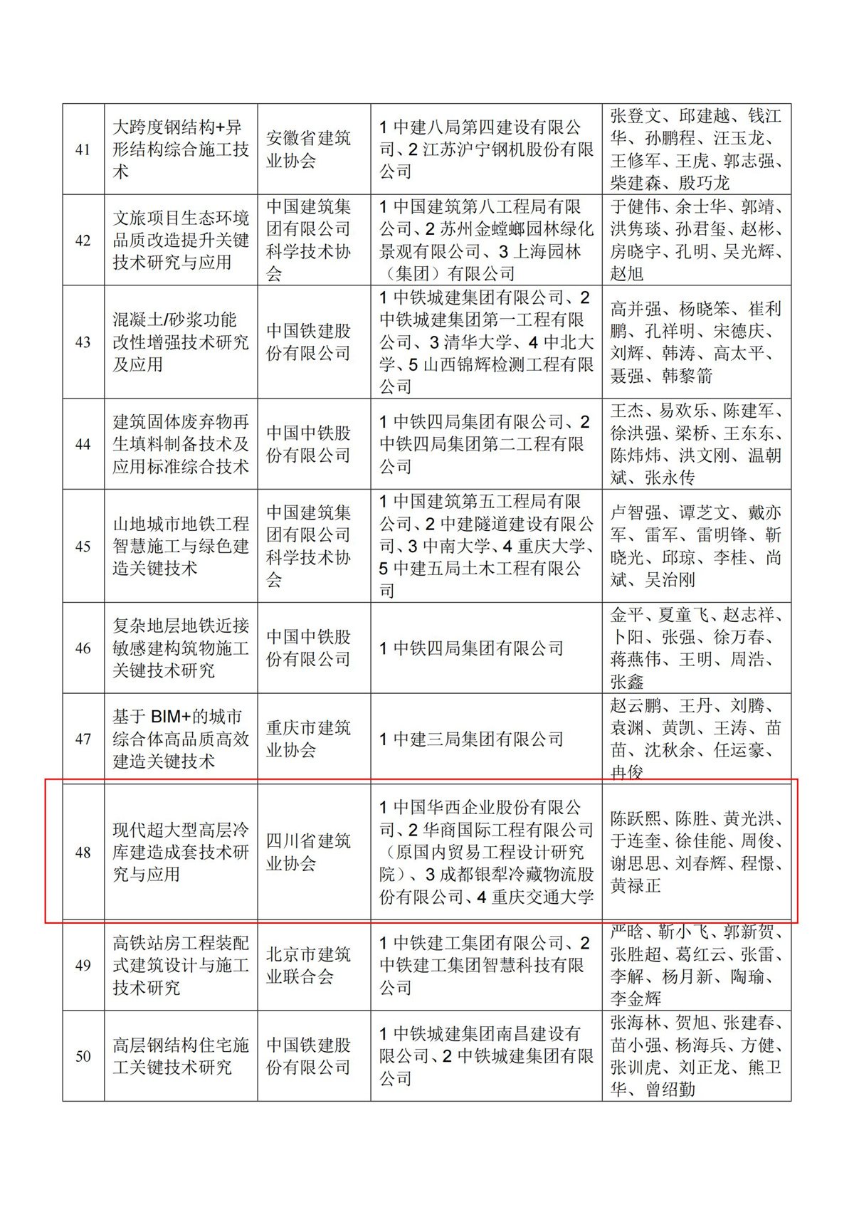 “現(xiàn)代超大型高層冷庫建造技術(shù)研究與應(yīng)用”成果是依托成都銀犁二期冷庫工程形成的科技研究成果,由中國(guó)華西企業(yè)股份有限公司第十二建筑工程公司主導(dǎo)完成??萍汲晒呀?jīng)榮獲四川省科技進(jìn)步獎(jiǎng),支撐完成國(guó)家標(biāo)準(zhǔn)2項(xiàng)、協(xié)會(huì)標(biāo)準(zhǔn)3項(xiàng),取得發(fā)明專利11項(xiàng)、實(shí)用新型專利22項(xiàng)、國(guó)家級(jí)工法1項(xiàng)、省級(jí)工法5項(xiàng),發(fā)表論文8篇。項(xiàng)目成果經(jīng)鑒定“整體達(dá)到國(guó)際先進(jìn)水平”,提升了我國(guó)冷庫行業(yè)的建造水平,技術(shù)成果已應(yīng)用于國(guó)內(nèi)20余座大型冷庫工程,取得了顯著的經(jīng)濟(jì)效益和社會(huì)效益。本次榮獲中施企協(xié)科技進(jìn)步二等獎(jiǎng),填補(bǔ)了在公司中施企協(xié)科技進(jìn)步獎(jiǎng)方面的空白,實(shí)現(xiàn)了又一次突破。