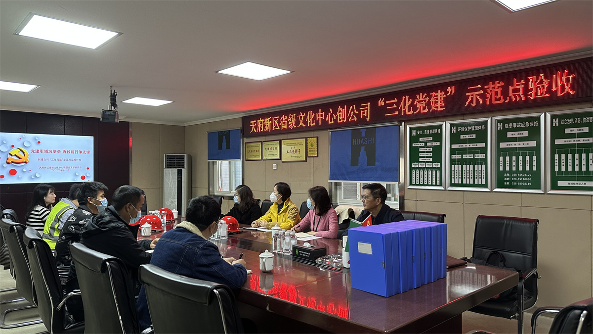 11月29日,由公司黨委工作部部長(zhǎng)伍貝貝及部門相關(guān)人員組成的“三化黨建”示范點(diǎn)驗(yàn)收組,對(duì)天府文化中心項(xiàng)目、先鋒若水居項(xiàng)目聯(lián)合黨支部進(jìn)行了“三化黨建”示范點(diǎn)驗(yàn)收,分公司黨總支書記余列,綜合管理部及項(xiàng)目主要管理人員參加驗(yàn)收。