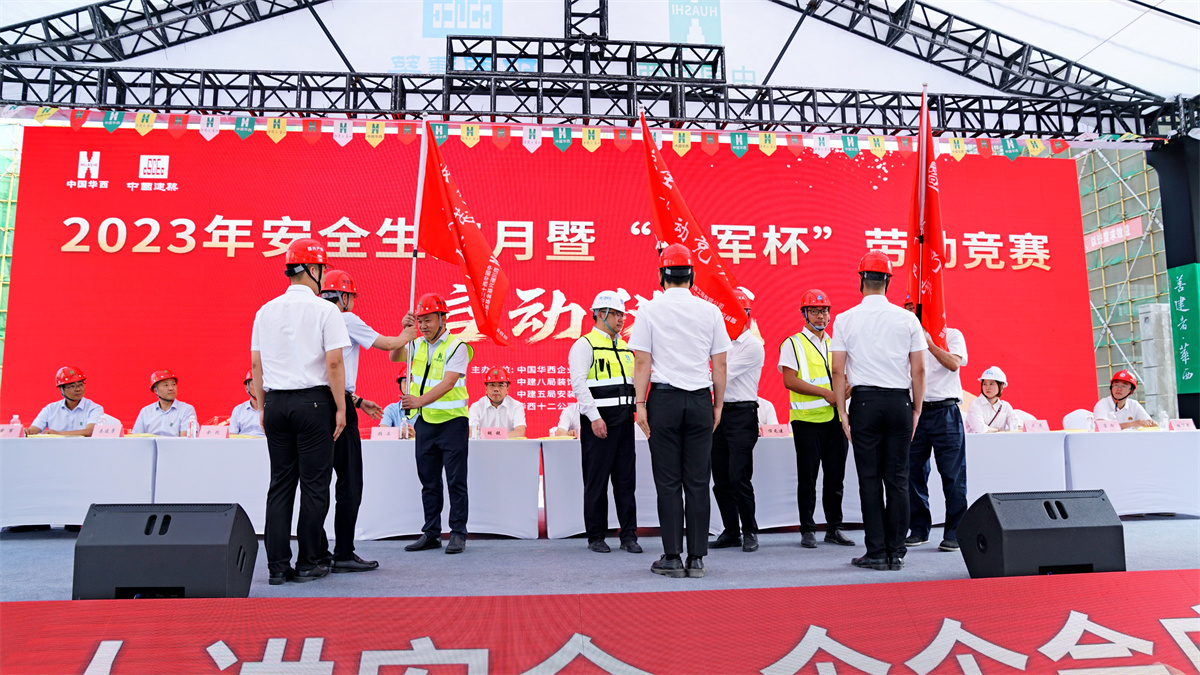 5月29日下午,由華西十二公司三分公司、中建八局裝飾工程有限公司、中建五局安裝公司共同主辦,振興基金基地項目承辦的2023年安全生產(chǎn)月暨“鐵軍杯”主題勞動競賽在項目現(xiàn)場召開。四川振興產(chǎn)城環(huán)天置業(yè)有限公司董事長朱承銘、總經(jīng)理安艷凌,華西十二公司副總經(jīng)理胡銳、三分公司領(lǐng)導班子,三信建設咨詢集團有限公司、中建八局裝飾工程有限公司、中建五局安裝公司相關(guān)領(lǐng)導及三分公司項目經(jīng)理、項目書記、安全總監(jiān)、安全員等200余人參加活動。