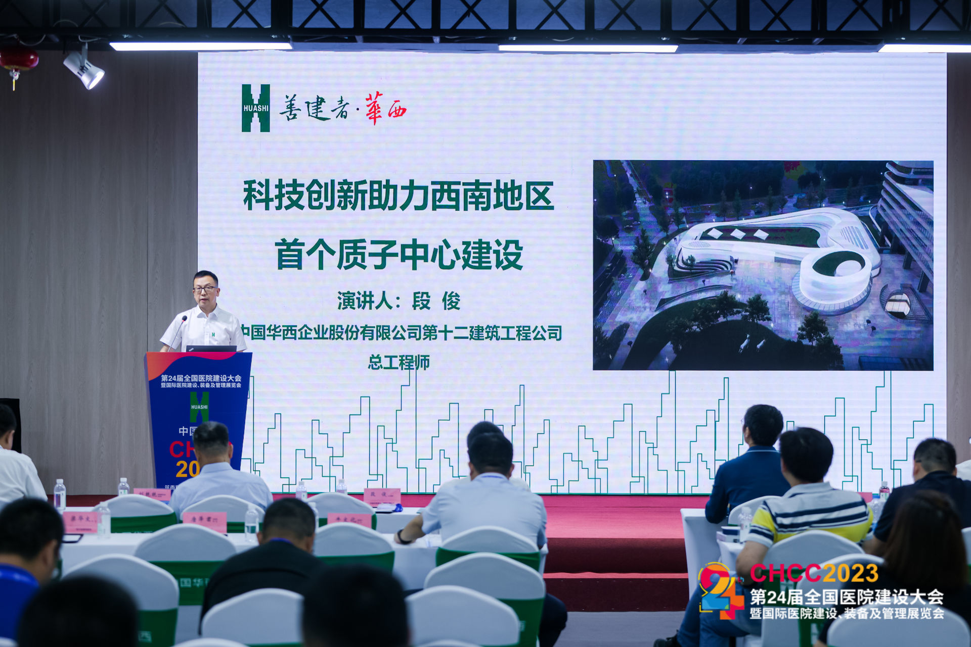 華西十二公司總工程師段俊為大家分享了《科技創(chuàng)新助力西南地區(qū)首個(gè)質(zhì)子中心建設(shè)》,講解建設(shè)過程中的科技創(chuàng)新之舉,他從EPC項(xiàng)目施工總承包方的角度講解了由十二公司承建的四川省腫瘤診療中心質(zhì)子治療中心項(xiàng)目是如何攻克技術(shù)重難點(diǎn)、BIM技術(shù)全壽命周期的參與過程以及到目前為止科技成果的匯總以及未來的科創(chuàng)目標(biāo)。