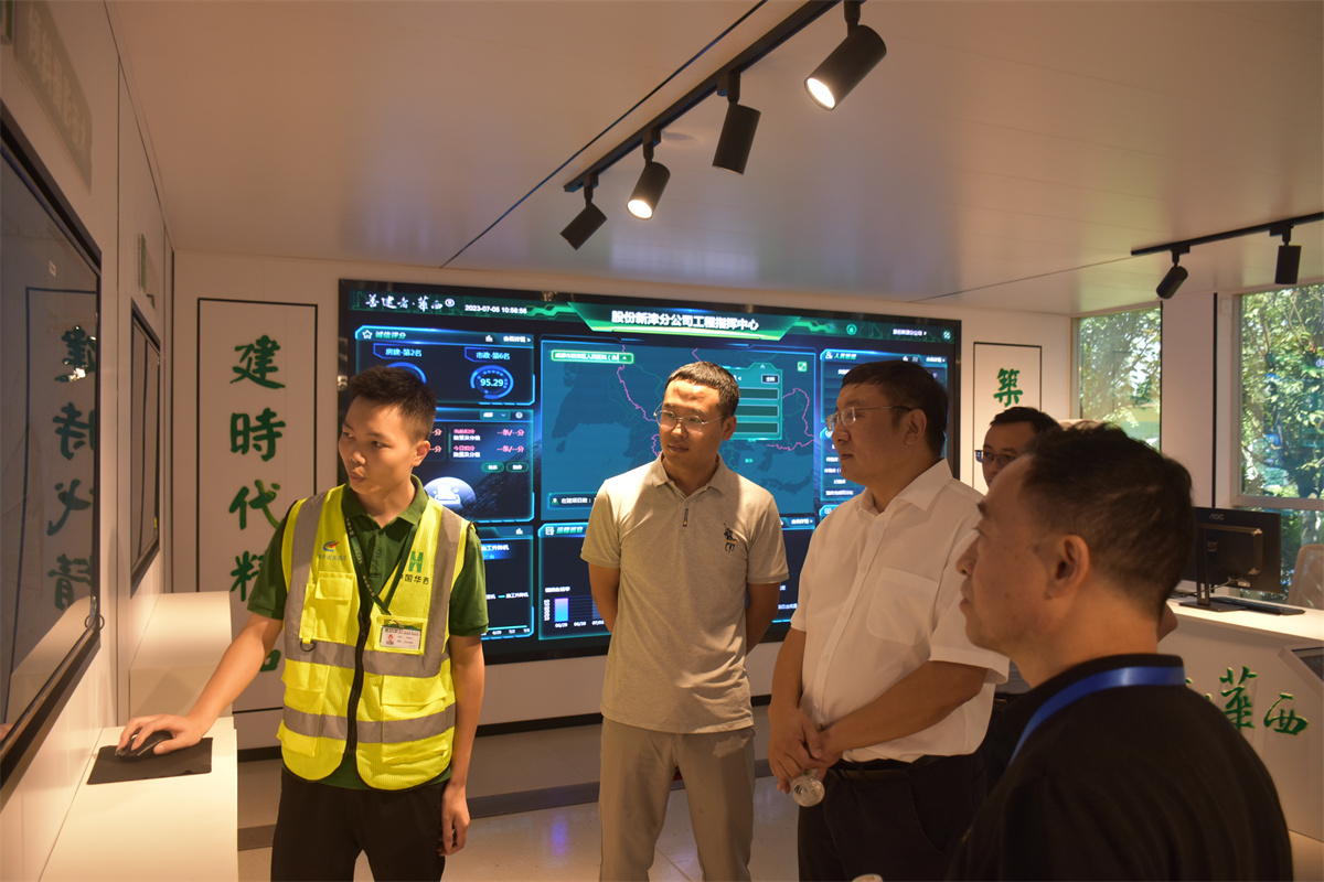 賈建勛一行實地查看了項目建設(shè)情況,聽取了項目建設(shè)進度匯報。隨后,來到智慧工地管理中心,詳細了解工地大腦、善建云平臺、形象進度展示、傾斜攝影以及“720云+”等新技術(shù)的應(yīng)用情況。他對項目的安全文明施工給予了高度評價,表示項目施工現(xiàn)場打造的干凈、整潔,是他見過的項目中為數(shù)不多讓人眼前一亮的項目,對項目“720云+”應(yīng)用贊不絕口,表示新技術(shù)的應(yīng)用讓建設(shè)方與使用方能通過手機端隨時隨地無死角了解到工程形象進度,讓人放心。