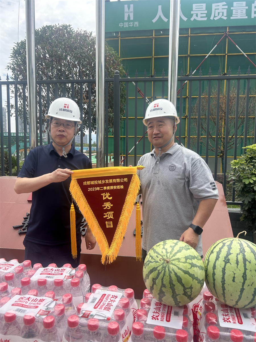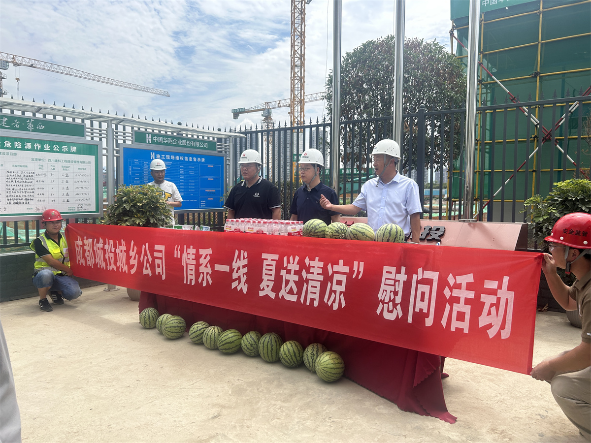 夏季高溫天氣來臨,為進(jìn)一步做好防暑降溫工作,切實(shí)維護(hù)一線職工健康權(quán)益,保障一線職工身體健康,向在高溫天氣下堅(jiān)守崗位,辛勤奮戰(zhàn)在一線的建設(shè)者們送去關(guān)心關(guān)懷,近日,由城投城鄉(xiāng)公司總經(jīng)理彭小川,副總經(jīng)理張平西,工程總監(jiān)閆瑾一行到金堂趙鎮(zhèn)沱源項(xiàng)目進(jìn)行“情系一線,夏送清涼”慰問活動(dòng),并向項(xiàng)目部頒發(fā)第二季度“優(yōu)秀項(xiàng)目”紅旗。
