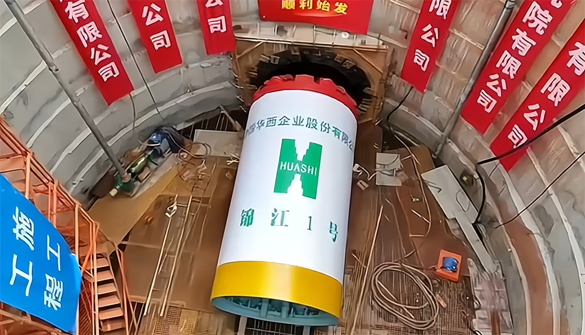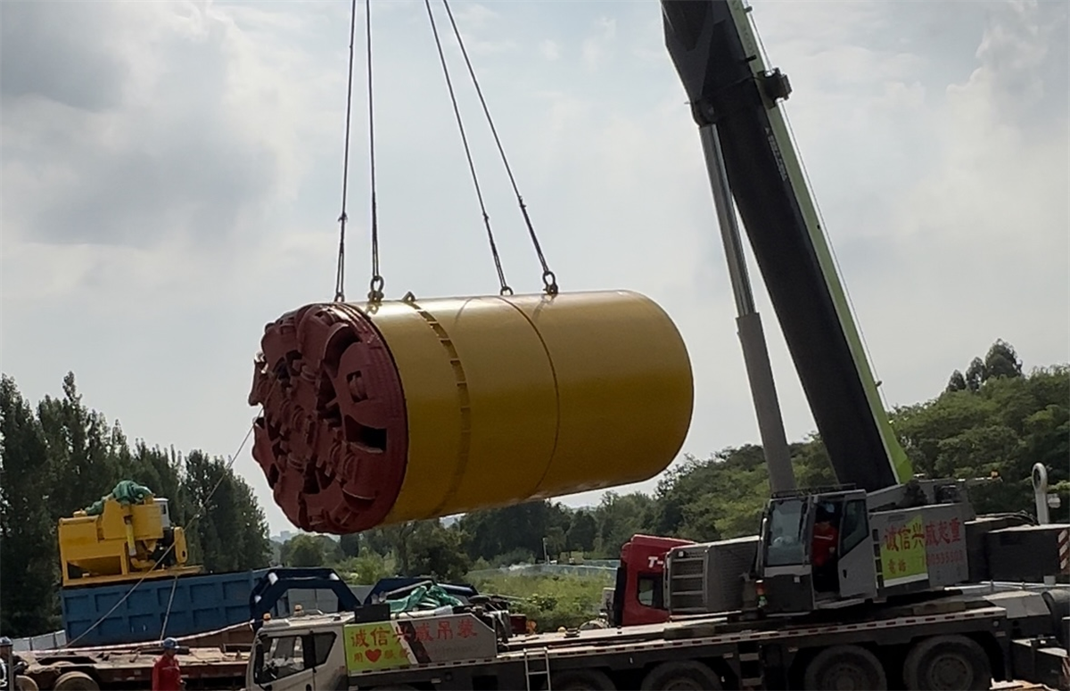 此次吊裝屬于超過一定規(guī)模的危險性較大工程,項目部根據(jù)專家論證,最終確定采用QAY220起重機,通過四點吊方式,將這臺“小怪獸”吊入深度14米的頂坑中去。這臺HRC-2400巖石頂管機,直徑2.92米,長5.85米,重約50噸,順利安裝后,通過浮動式大刀盤進行切削,排泥管將棄土排出泥水艙的方式安裝管道,有著減少地面開挖、縮短工期、降低成本等顯著優(yōu)點。