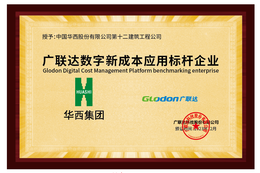 近日,集團(tuán)“善建云”數(shù)字新成本平臺(tái)(一期)項(xiàng)目實(shí)施工作順利完成,華西十二公司被授予“廣聯(lián)達(dá)數(shù)字新成本應(yīng)用標(biāo)桿企業(yè)”榮譽(yù)稱號(hào)。