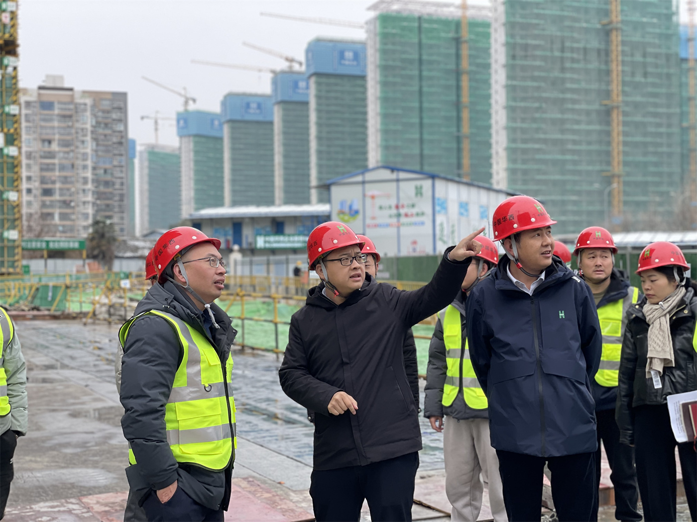 在青義鎮(zhèn)統(tǒng)規(guī)統(tǒng)建安置房(一期)項目,龍鶴了解了項目施工進度、工程技術(shù)重難點、安全質(zhì)量管理、創(chuàng)優(yōu)爭先等方面的情況,他肯定了項目團隊在前期各項工作中做出的成績,同時強調(diào)施工安全這條防線一刻也不能松懈。