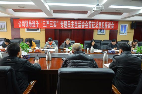 按照集團(tuán)黨委要求,公司領(lǐng)導(dǎo)班子將于2015年12月底召開“三嚴(yán)三實”專題民主生活會。為高質(zhì)量開好“三嚴(yán)三實”專題民主生活會,按集團(tuán)黨委會前要“廣泛征求意見建議”的要求,12月15日至22日,公司黨委工作部和紀(jì)委辦,分別在公司機(jī)關(guān)、領(lǐng)地·環(huán)球金融中心項目、綿陽分公司和恒大雅苑項目,采取召開座談會和發(fā)放意見表等形式,征求了部份職工群眾對公司領(lǐng)導(dǎo)班子和班子成員在“踐行‘三嚴(yán)三實’”方面的意見建議和加強(qiáng)公司內(nèi)部管理等方面的意見建議。
