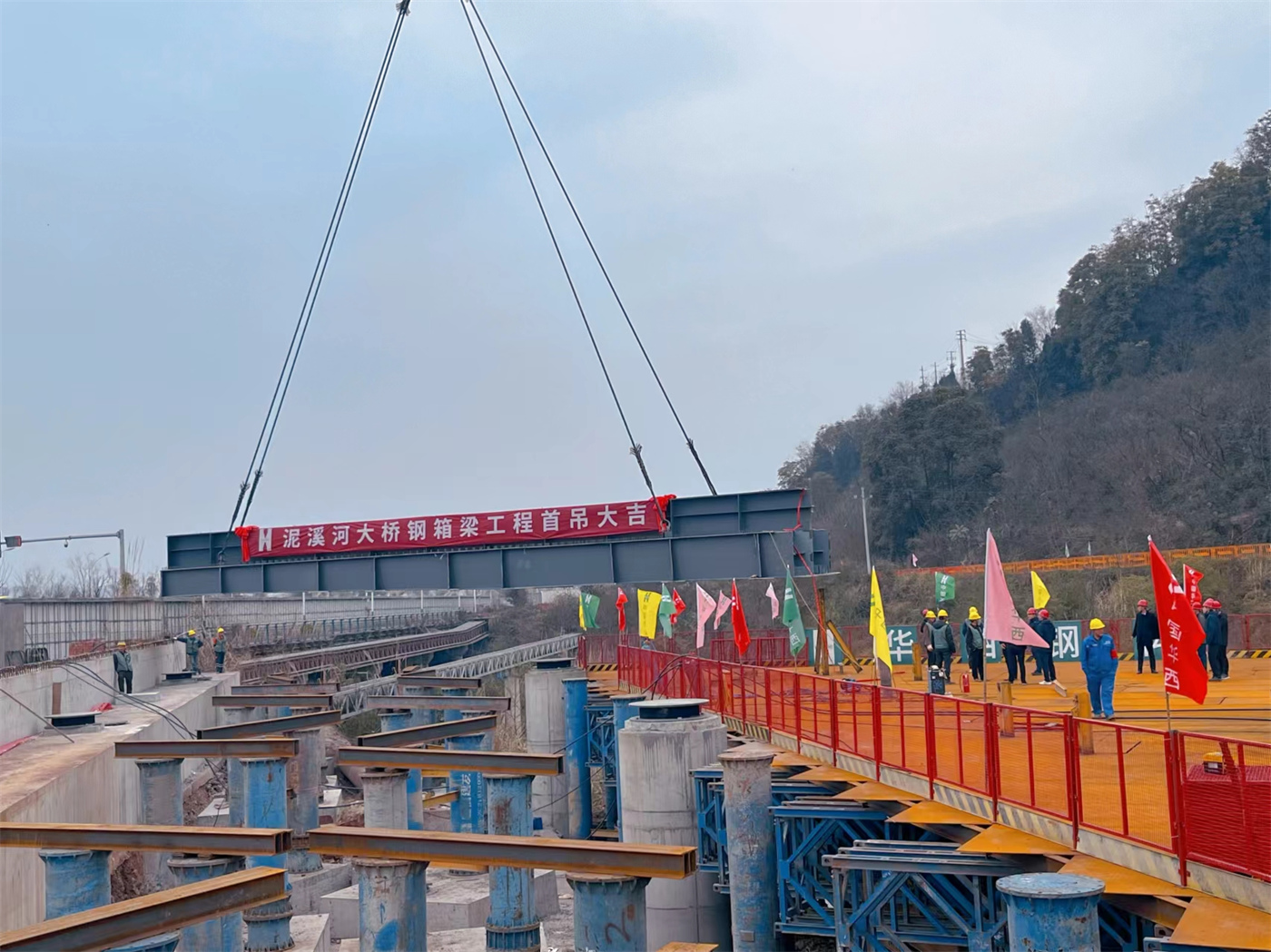 3月6日,鋼結(jié)構(gòu)公司泥溪河鋼箱梁橋工程舉行首吊儀式,南充市嘉陵區(qū)交通運(yùn)輸局黨組成員、質(zhì)檢中心主任秦洪波,省建十五公司水利水電工程公司黨支部書記、經(jīng)理韓義,四川元豐建設(shè)項(xiàng)目管理有限公司項(xiàng)目總監(jiān)錢金來,華西十二公司鋼結(jié)構(gòu)公司黨支部副書記、副總經(jīng)理張浩出席啟動(dòng)儀式。