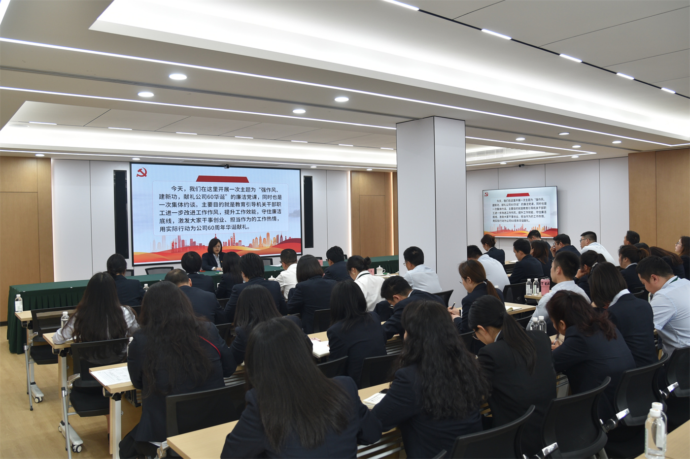 公司黨委委員、紀委書記、機關(guān)黨總支書記趙尤蕾同志為全體人員上了主題為《強作風(fēng) 建新功 獻禮公司60華誕》的廉潔黨課。趙尤蕾同志以兩個提問切入黨課主題:我們?yōu)槭裁匆倪M作風(fēng)?怎樣改進機關(guān)工作作風(fēng)?