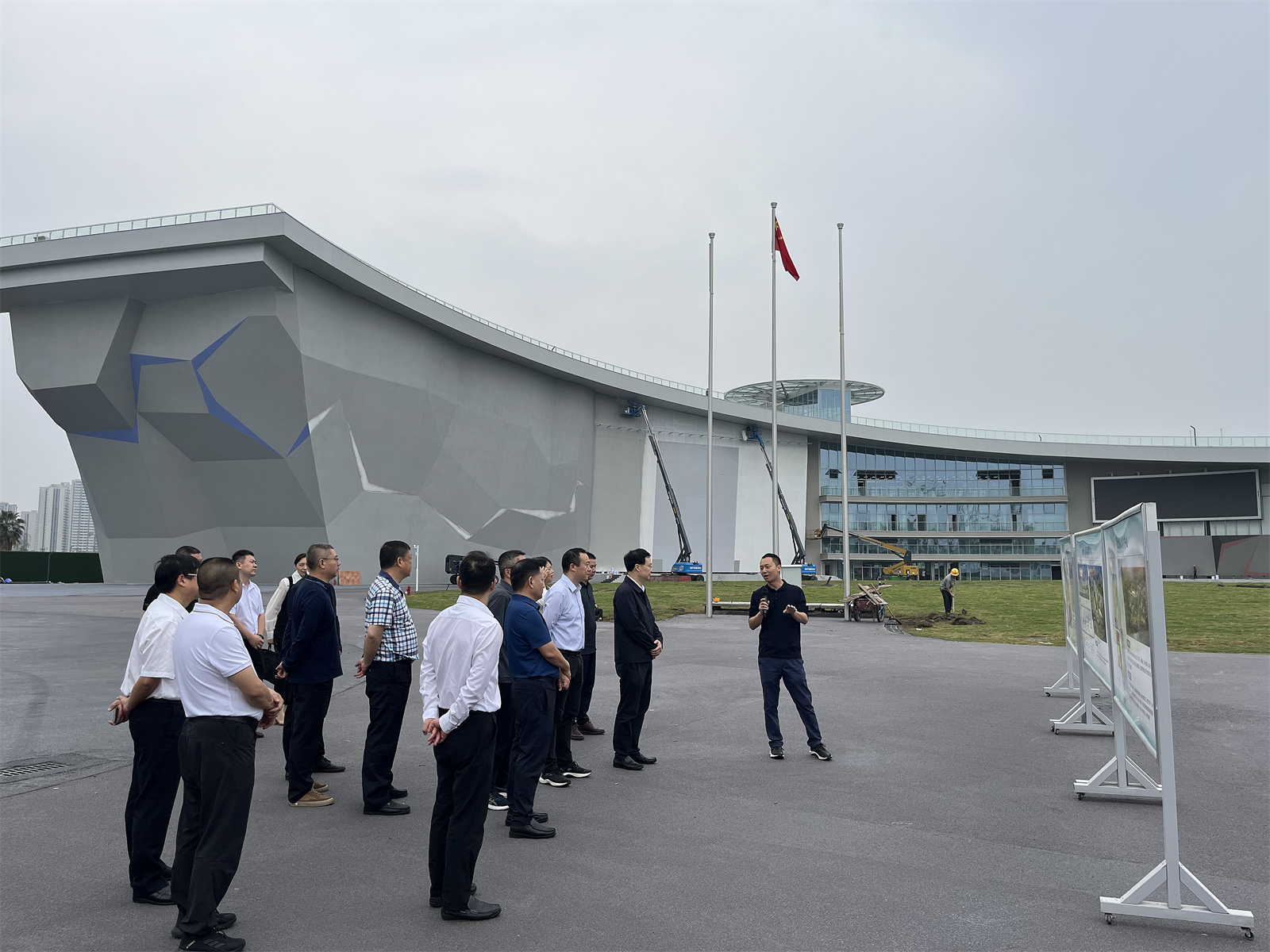 當(dāng)日,眉山市委常委、政法委書(shū)記楊軍一行也來(lái)到項(xiàng)目調(diào)研。楊軍詳細(xì)了解了攀巖館的建設(shè)情況,他表示,這是一個(gè)建設(shè)難度很大的攻堅(jiān)項(xiàng)目,華西作為施工單位日夜兼程搶進(jìn)度,在確保施工進(jìn)度按計(jì)劃推進(jìn)的同時(shí),還保證了工程的質(zhì)量和安全,拼搏精神值得肯定!