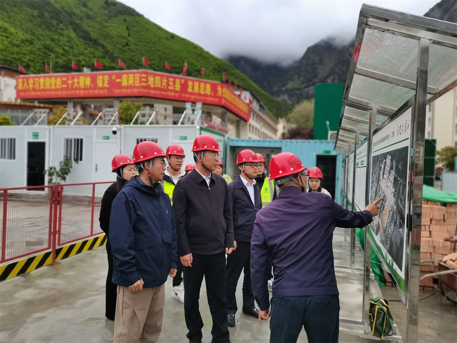 會(huì)談前,范曉晉一行到理縣縣城停車場(chǎng)項(xiàng)目施工現(xiàn)場(chǎng),詳細(xì)了解了項(xiàng)目施工進(jìn)度、安全生產(chǎn)、工程質(zhì)量、職工生活保障等方面情況。