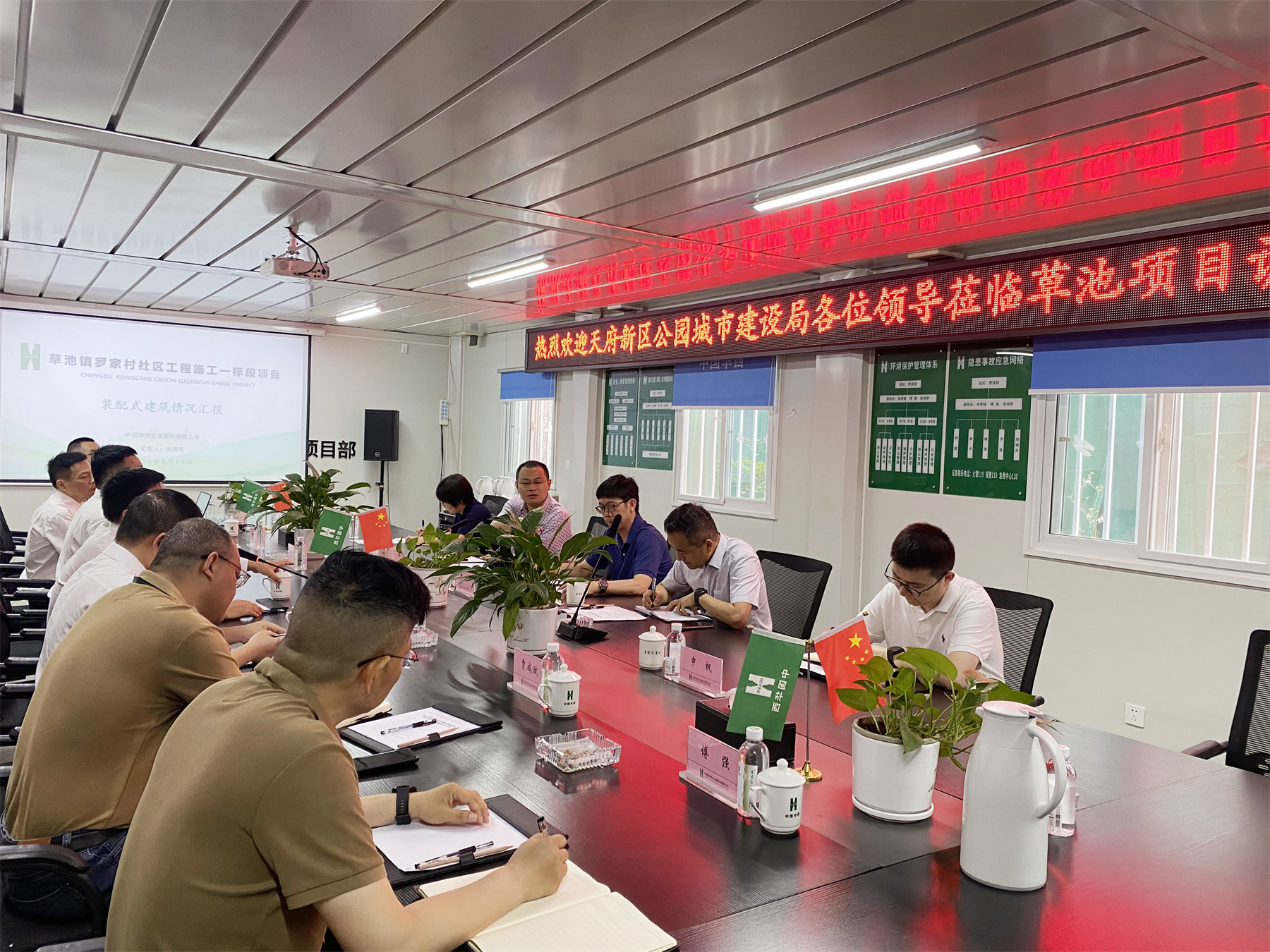 5月10日,四川天府新區(qū)公園城市局質(zhì)量安全監(jiān)督站站長李勇,建設(shè)管理處處長何曉中,規(guī)劃管理處處長羅錦一行到草池鎮(zhèn)羅家村社區(qū)工程施工一標(biāo)段項(xiàng)目開展裝配式建筑施工調(diào)研。公司安全環(huán)保部部長張兵,一分公司黨總支副書記、副總經(jīng)理文力,總工程師肖志勇及項(xiàng)目相關(guān)管理人員參加。