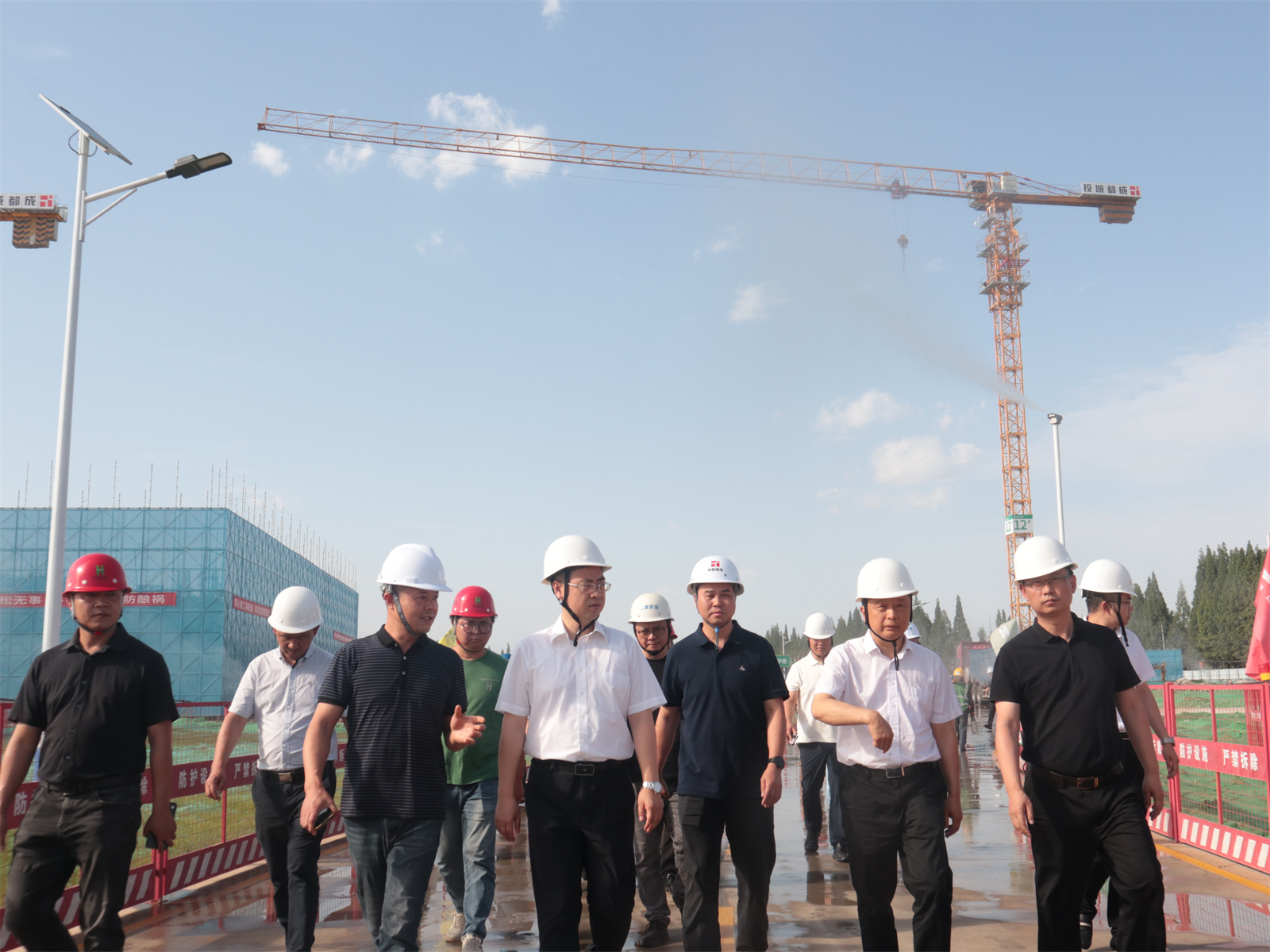 在施工現(xiàn)場(chǎng),胡建平一行重點(diǎn)了解了現(xiàn)場(chǎng)施工技術(shù)應(yīng)用及綠色施工情況。在環(huán)保治理方面,項(xiàng)目部積極采取濕法作業(yè),實(shí)施一機(jī)一霧炮的管理模式,設(shè)置360°高空旋轉(zhuǎn)霧狀噴淋系統(tǒng),有效抑制了空氣中的揚(yáng)塵顆粒,進(jìn)一步提升了施工環(huán)境的清潔度。