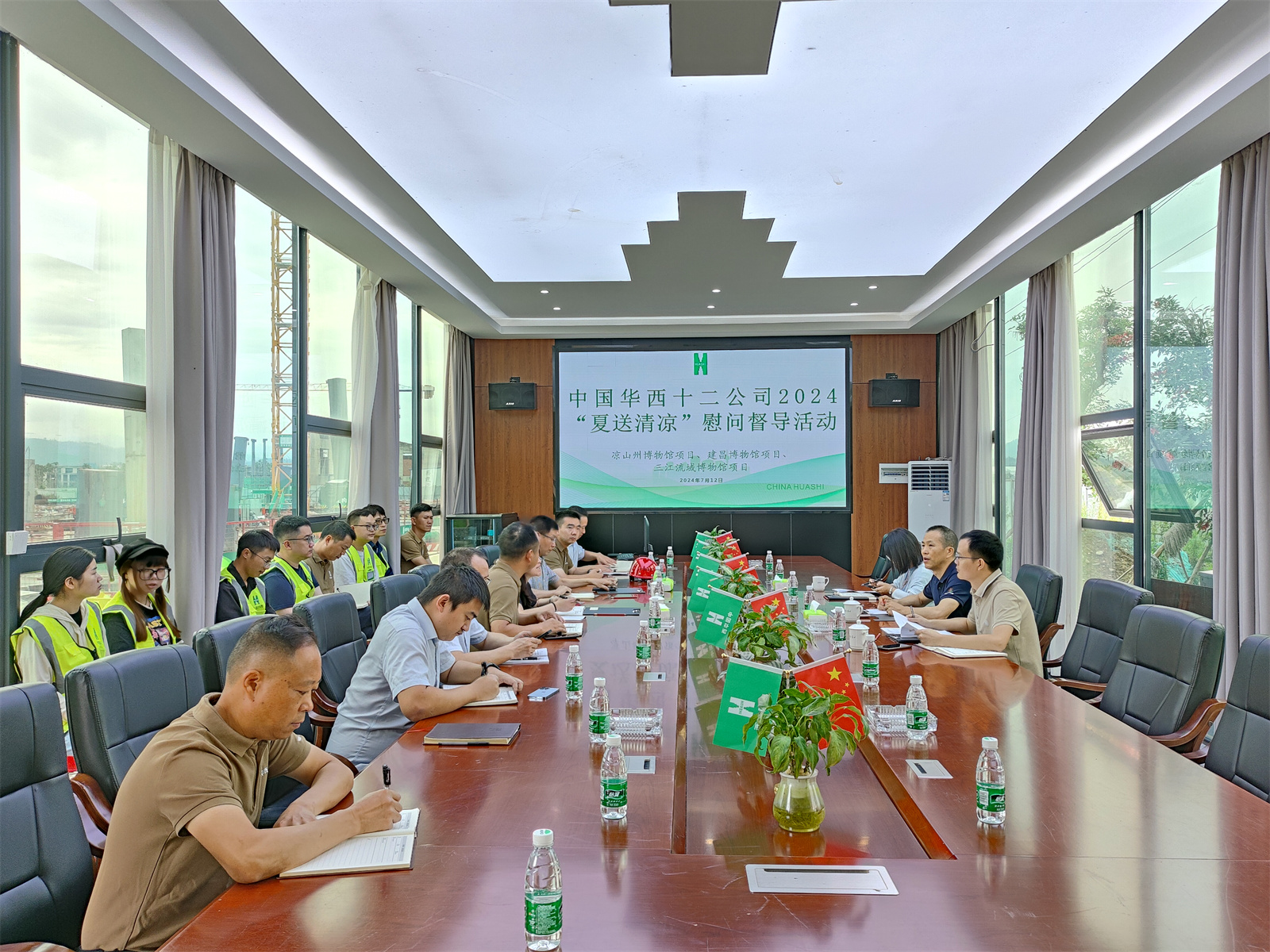 7月12日,華西十二公司黨委委員、財(cái)務(wù)總監(jiān)孟軍赴西昌公益三館項(xiàng)目開(kāi)展慰問(wèn)督導(dǎo)活動(dòng)。公司財(cái)稅資金管理部部長(zhǎng)王維,一分公司副總經(jīng)理刁姝,攀西辦事處總經(jīng)理龐錢(qián)祥及分公司、項(xiàng)目相關(guān)人員參加。