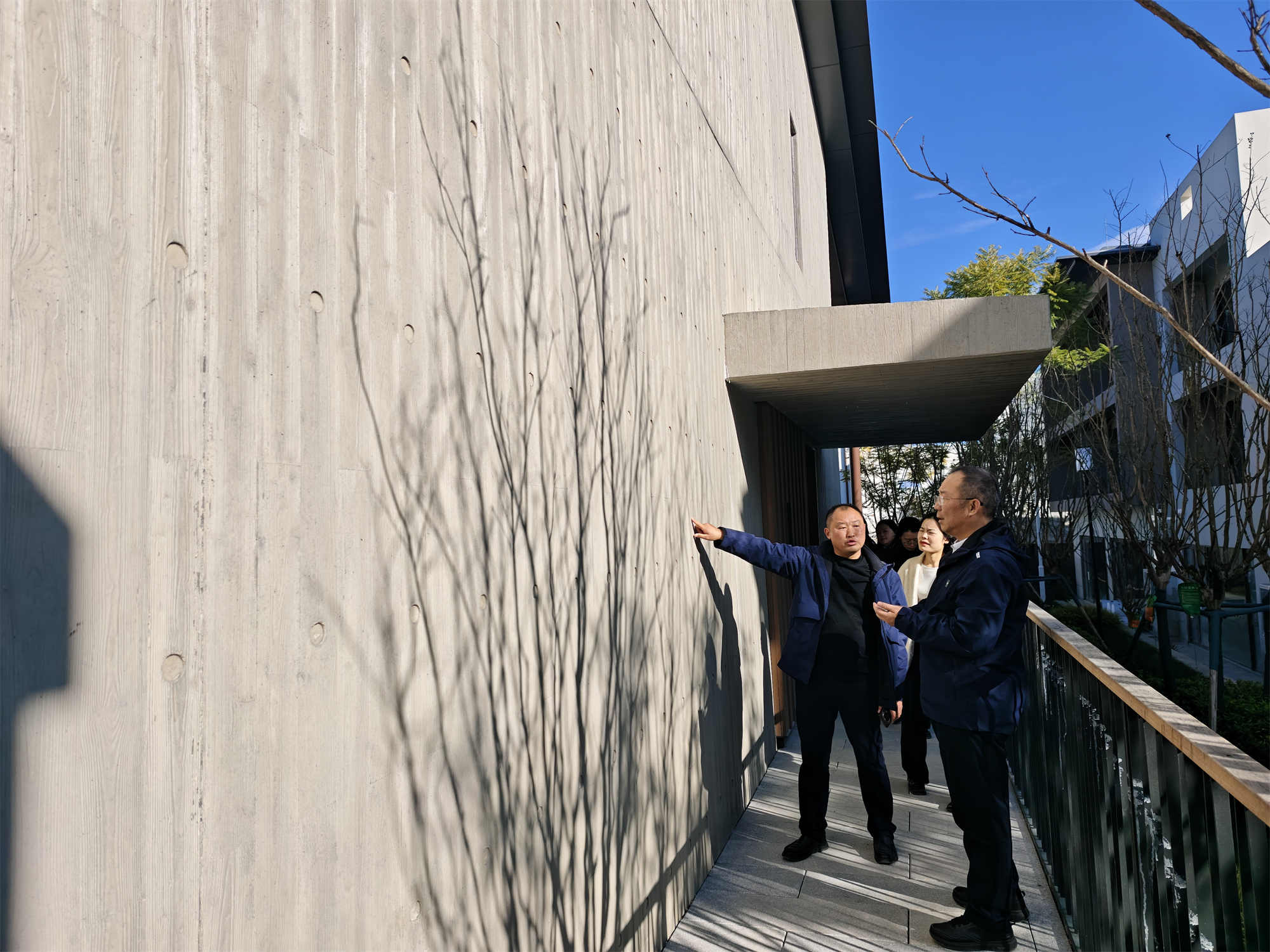 范曉晉一行先后參觀了項(xiàng)目在建地塊、已交付地塊及木紋清水混凝土,了解了現(xiàn)場(chǎng)施工部署及實(shí)際進(jìn)度,給予了木紋清水混凝土高度評(píng)價(jià)。范曉晉還為外區(qū)職工送上了慰問物品,詢問了大家的近況,叮囑大家做好冬季保暖,健健康康回家過年。