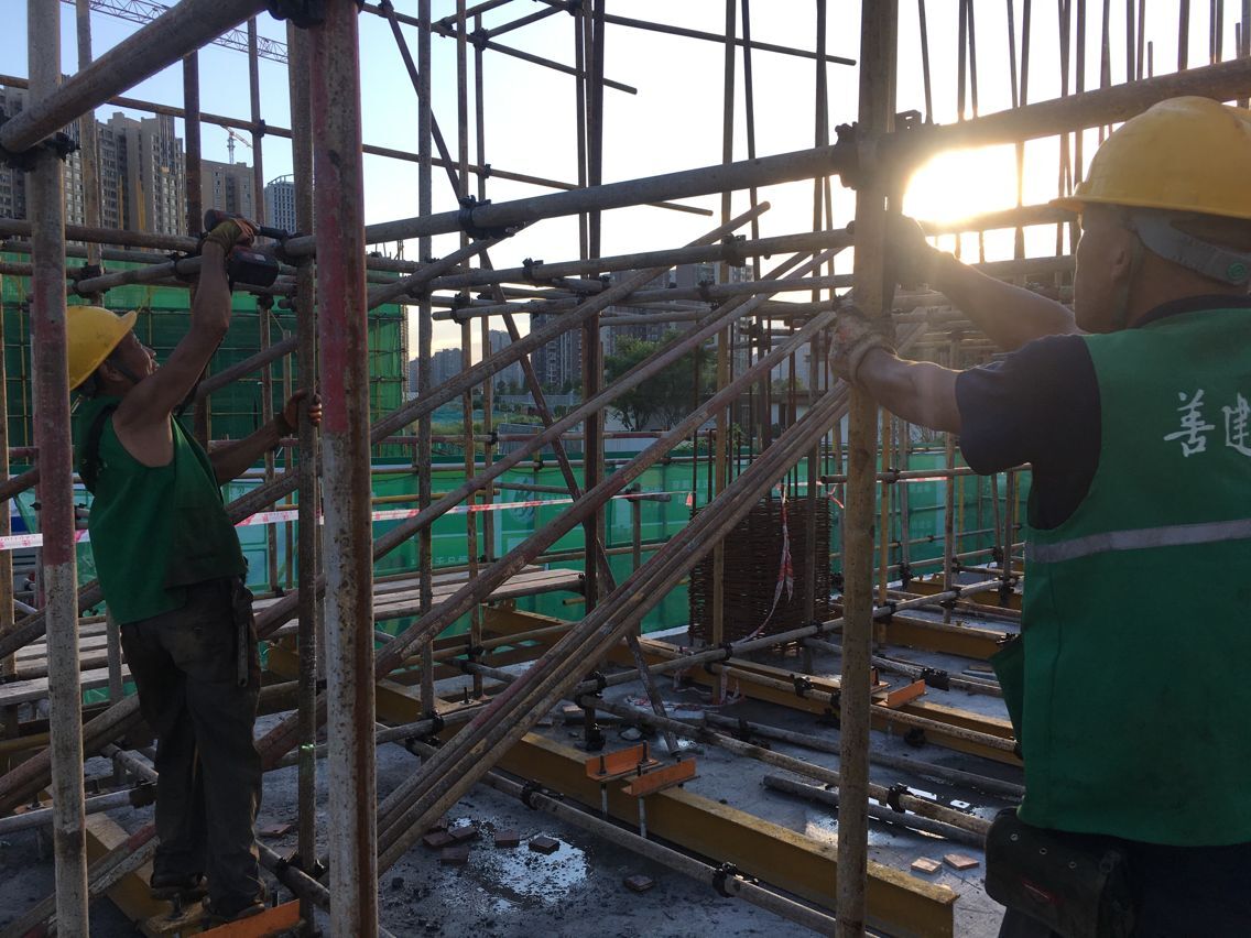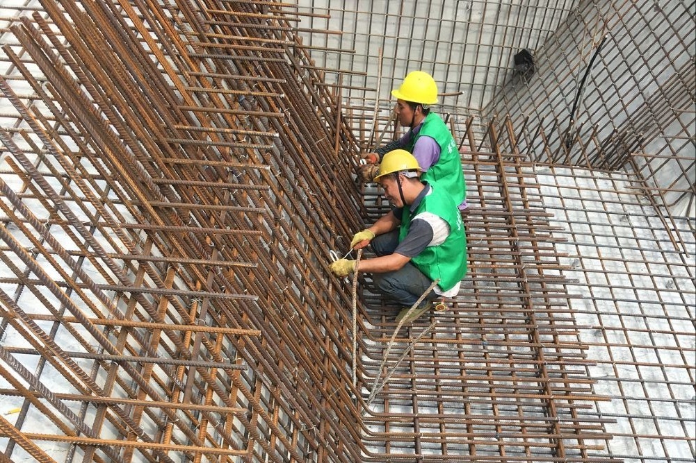 兩位鋼筋工人聚精會(huì)神的身影,
