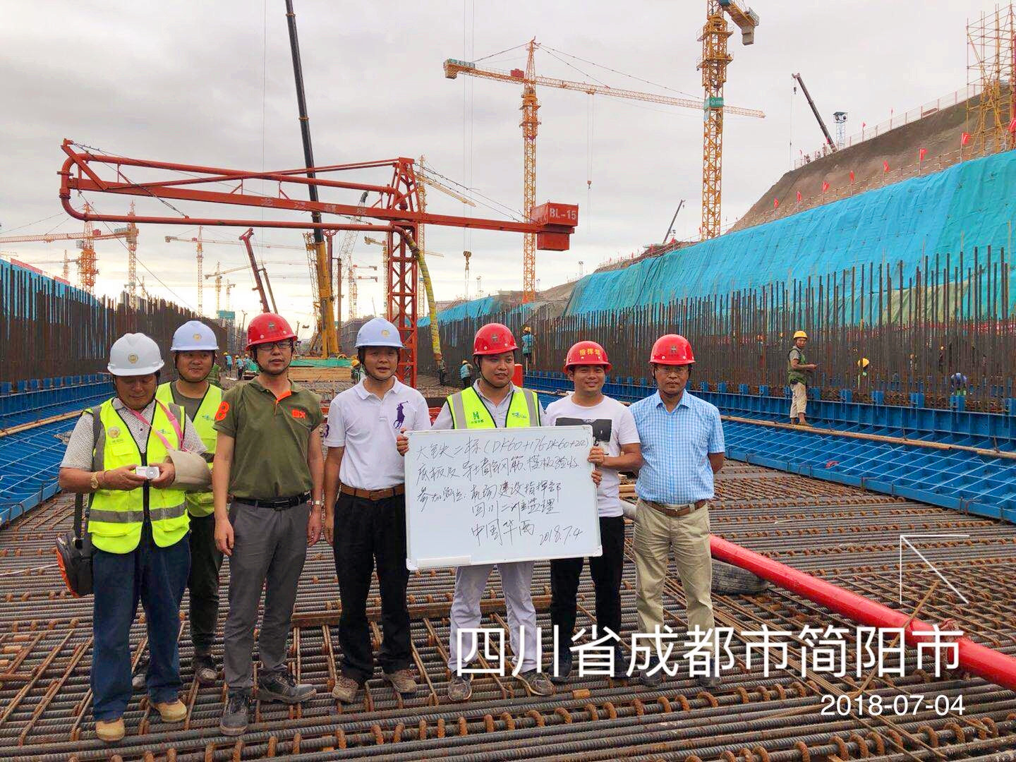 在監(jiān)理和指揮部的密切關注中,隨著3輛混凝土運輸車輛的接力,大鐵首段混凝土的澆筑較為順利地開始,大鐵區(qū)的同志們按照既定方案24小時輪流在現(xiàn)場值班。好事總多磨,當天夜里突發(fā)下雨,泵管堵塞,第二天夜里突發(fā)故障性停電,對需要澆筑大量混凝土的大鐵來說無異于晴天霹靂,由此引發(fā)了一系列需協(xié)調的問題,同志們扎根在現(xiàn)場,以“死磕”的狀態(tài)調動各方資源將難關各個擊破,確?;炷翝仓樌七M。翌日下午,公司黨委書記朱軍趕至現(xiàn)場了解實時狀況。7月5日深夜,項目經理、執(zhí)行經理帶隊趕往現(xiàn)場,與現(xiàn)場人員一道解決突發(fā)狀況,直至凌晨4點才返回住地。