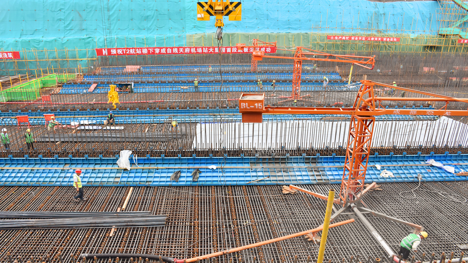 天府機場項目從承接開始,善于做房建的項目團隊清醒地知道大鐵的施工將是挑戰(zhàn)也是機遇。大鐵位于航站樓大廳底部,它影響了航站樓大廳2/3的施工區(qū)域,施工難點是整個航站區(qū)之最,是整個項目關鍵節(jié)點中的關鍵,華西是第一次修建此類工程。第一次做大鐵就要做成精品,精品需從第一步開始奠定良好基礎,首段混凝土澆筑的成功與否便是這關鍵的第一步,具有里程碑的意義。