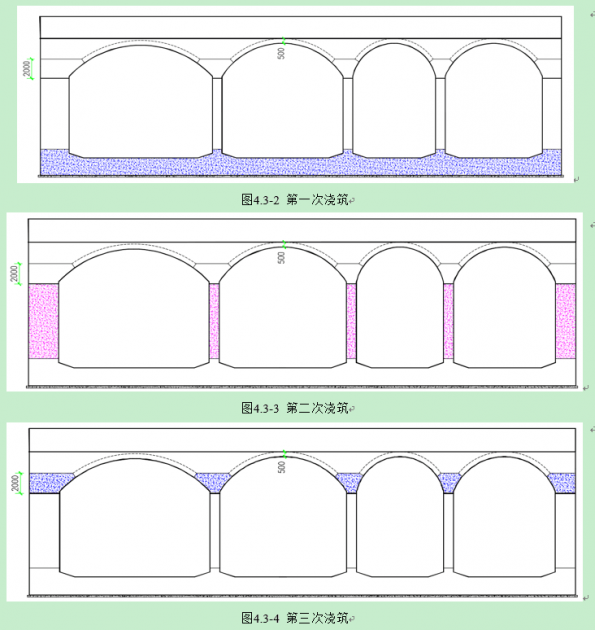 為確保項(xiàng)目工期,同時(shí)保質(zhì)保量的完成工程建設(shè)任務(wù),三家總承包單位共同討論、研究,并以過(guò)去類似施工經(jīng)驗(yàn)為依托,最終提出遞推流水施工方案。根據(jù)試驗(yàn)驗(yàn)證,混凝土在澆筑初期收縮形變最大,通過(guò)釋放初期收縮,控制后期收縮形變,相鄰區(qū)段砼澆筑時(shí)間間隔7-10天即可滿足裂縫控制要求。取消后澆帶,避免了后澆帶處的滲漏風(fēng)險(xiǎn)及封閉必要的技術(shù)間隔時(shí)間,大大減少了對(duì)上部結(jié)構(gòu)及工程進(jìn)度的影響。